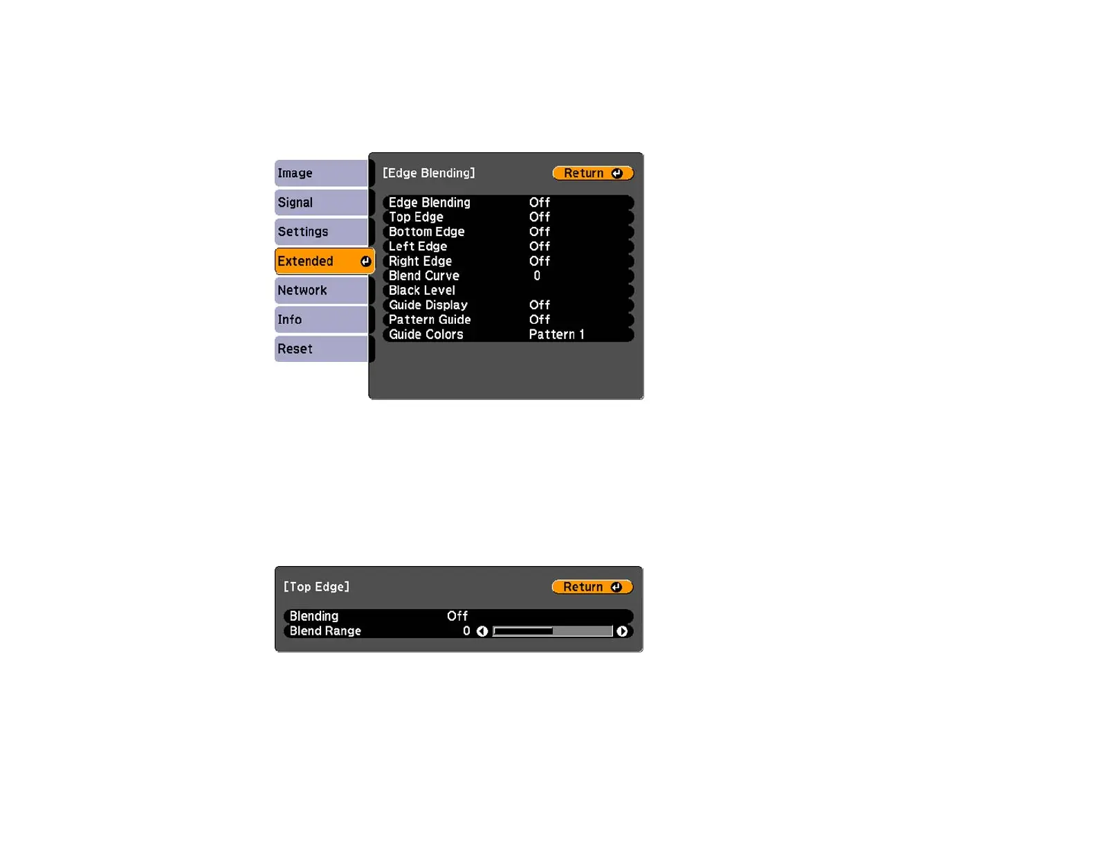 4. Select the Edge Blending setting and press Enter.