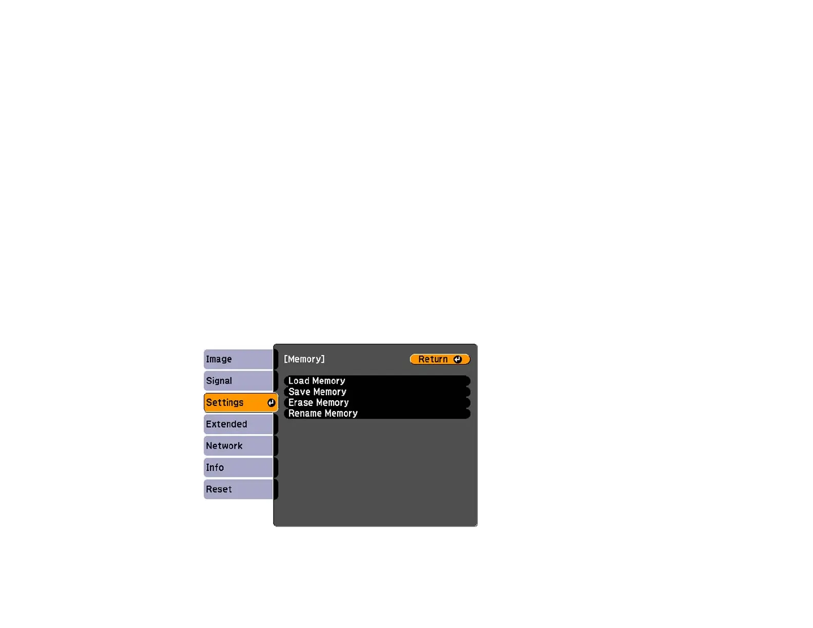 4. Select the Memory setting and press Enter.
