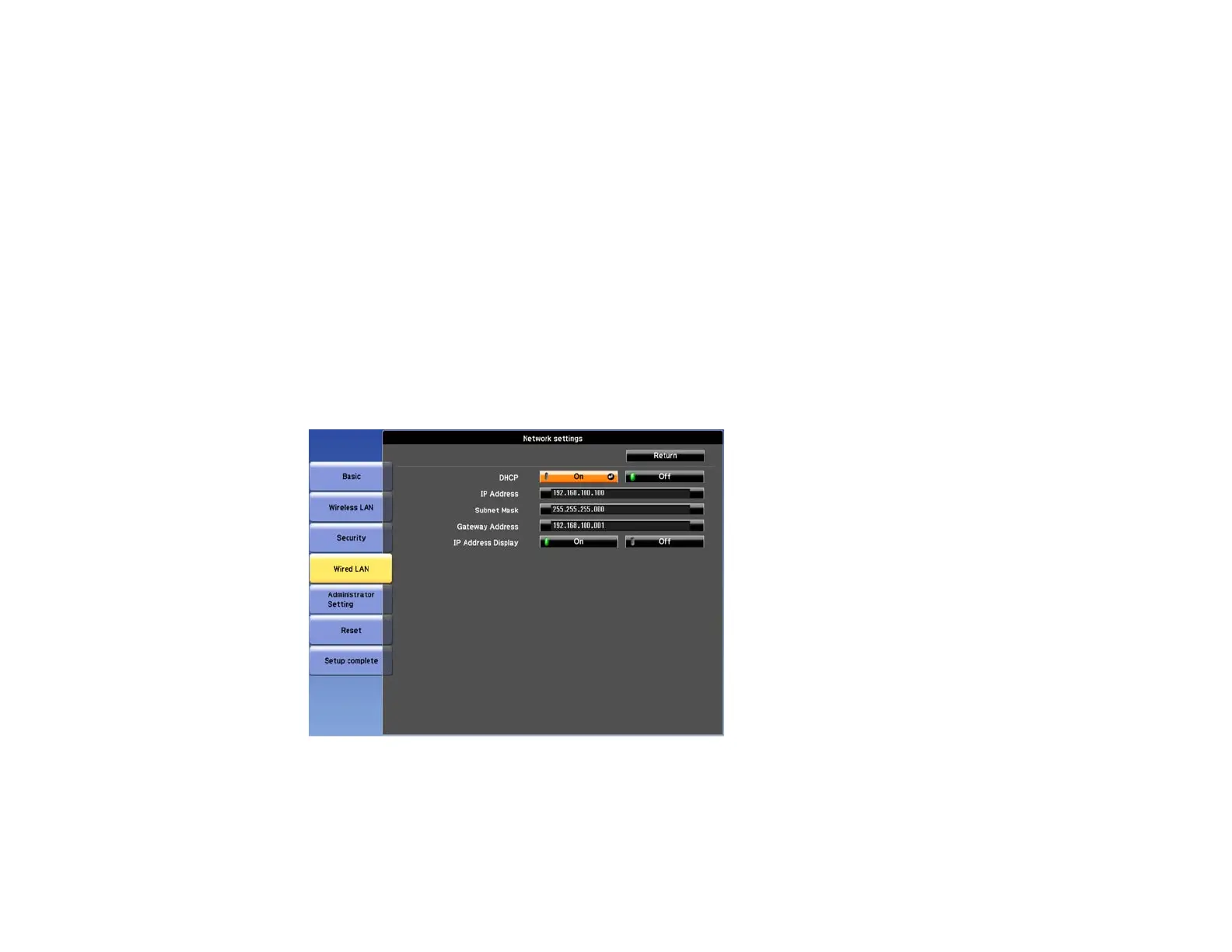 • If your network assigns addresses automatically, turn on the DHCP setting.