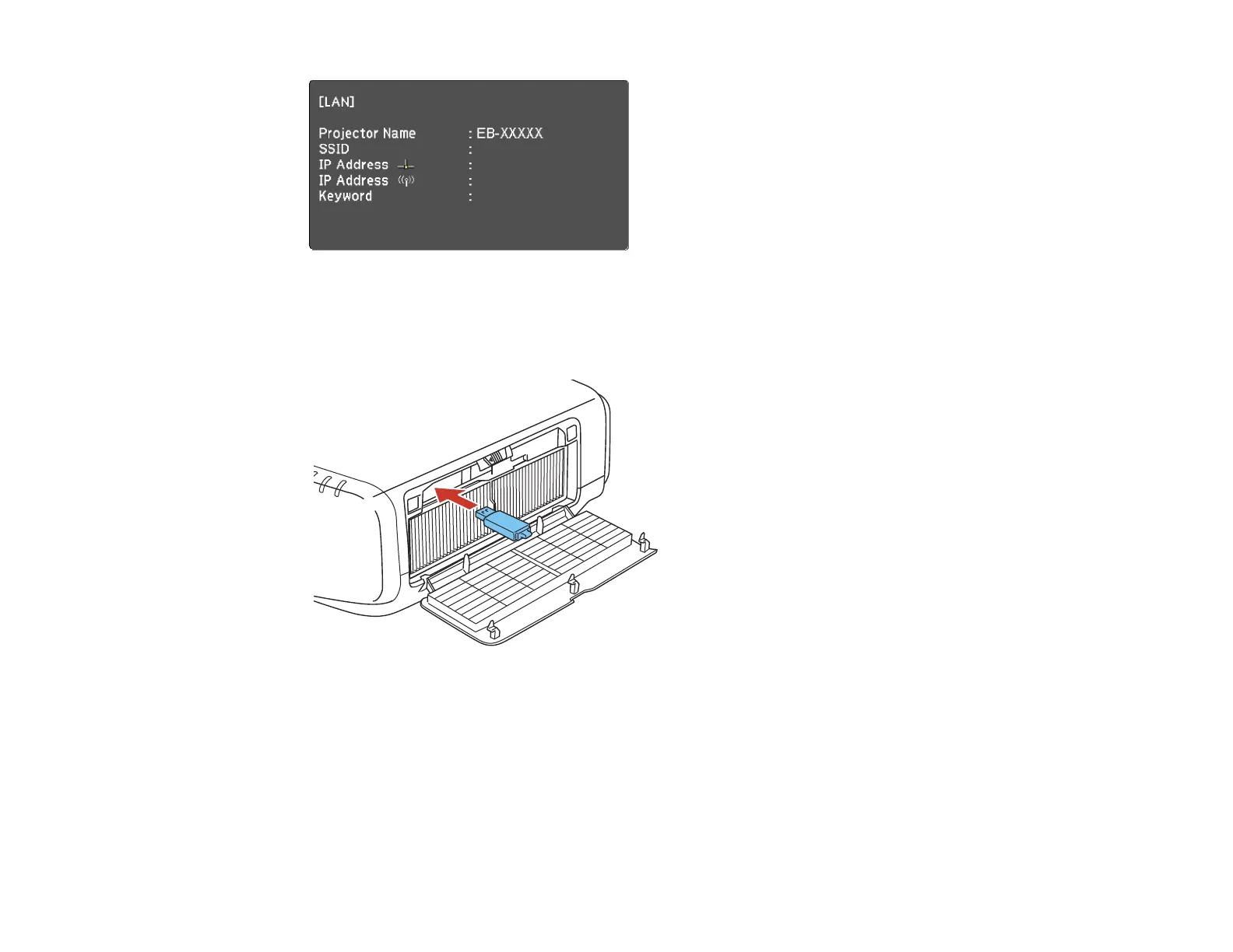 4. Insert the Quick Wireless Connection USB key into the same port used for the wireless LAN module.