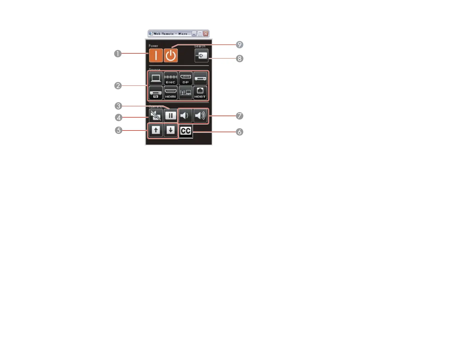 2 Input source selection controls (some buttons may not be available depending on the model)