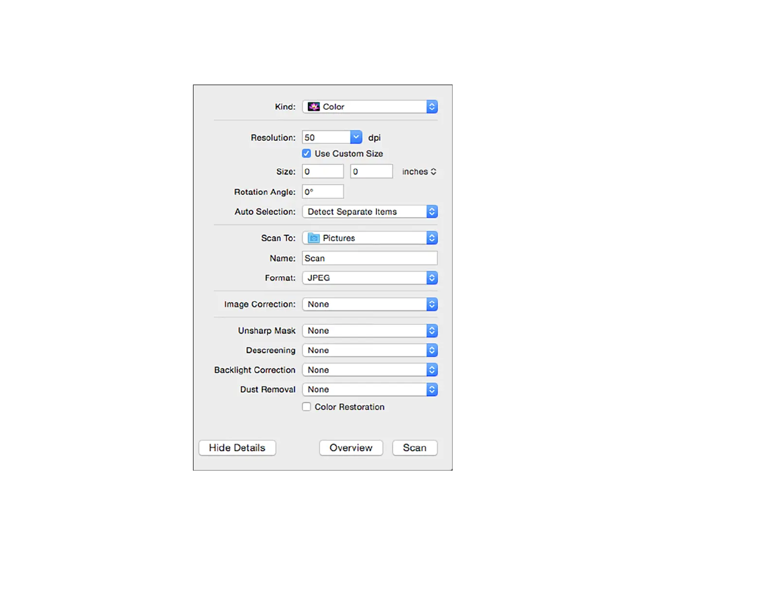 4. Select the Scan Mode setting indicating where you placed your original (if available). Select any