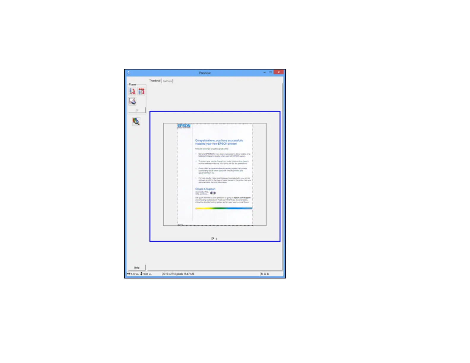Thumbnail preview: Your scan area is selected automatically, but you can change it. Place your
