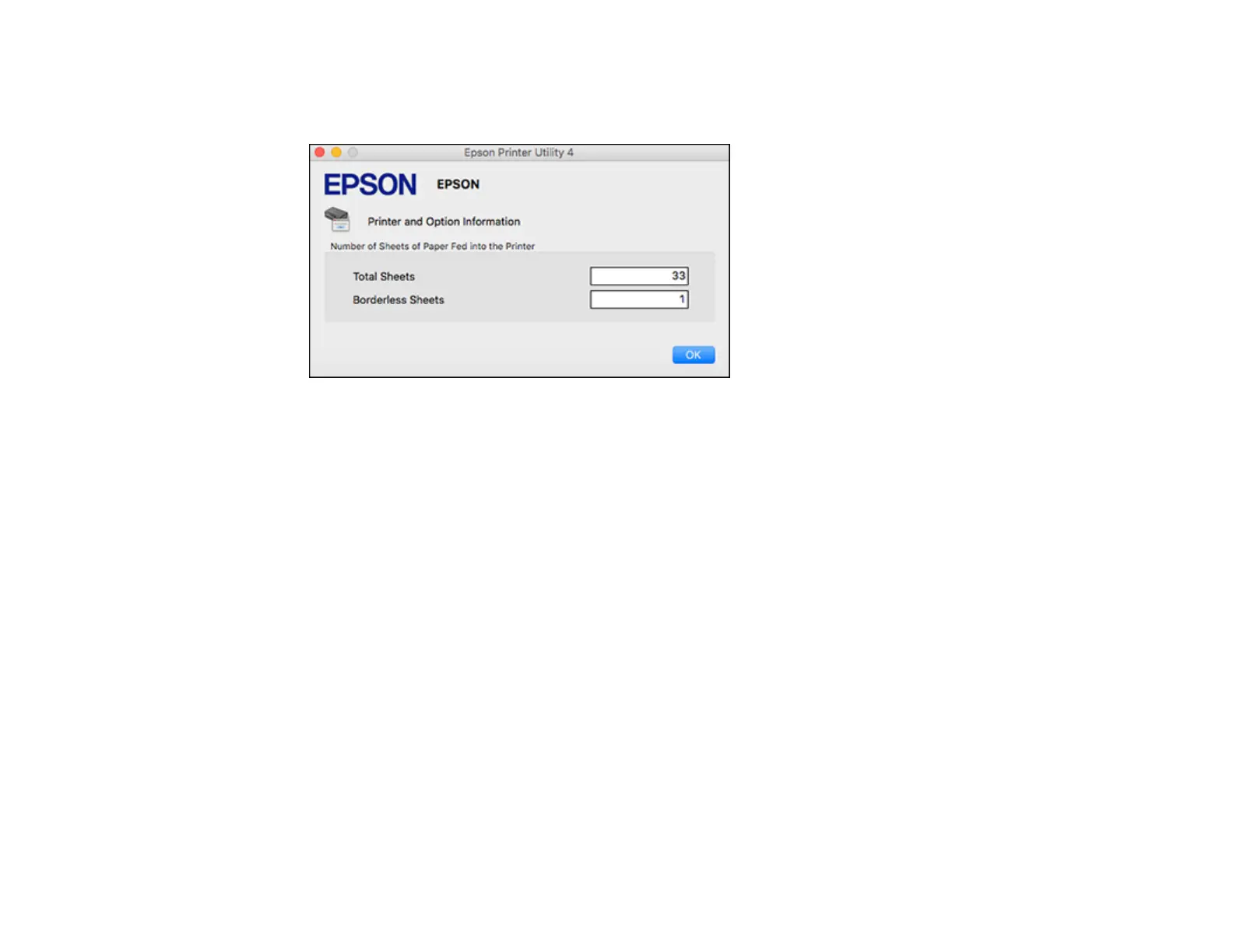 3. After checking the number of sheets fed into the printer, click OK to close the window.