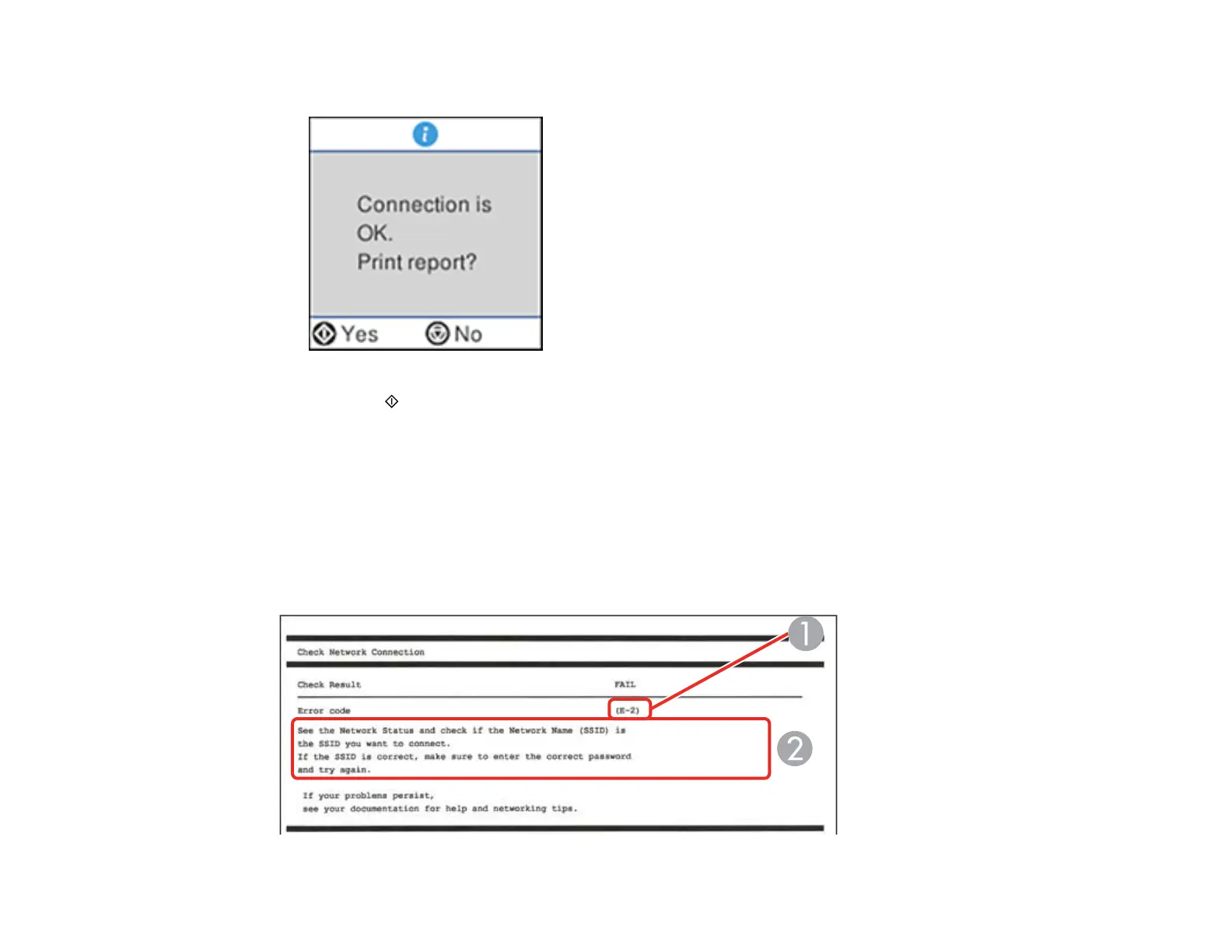 Examine any error codes and solutions shown on the network connection report.