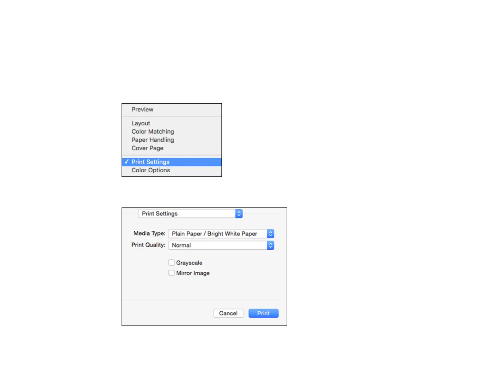 8. Select Print Settings from the pop-up menu.