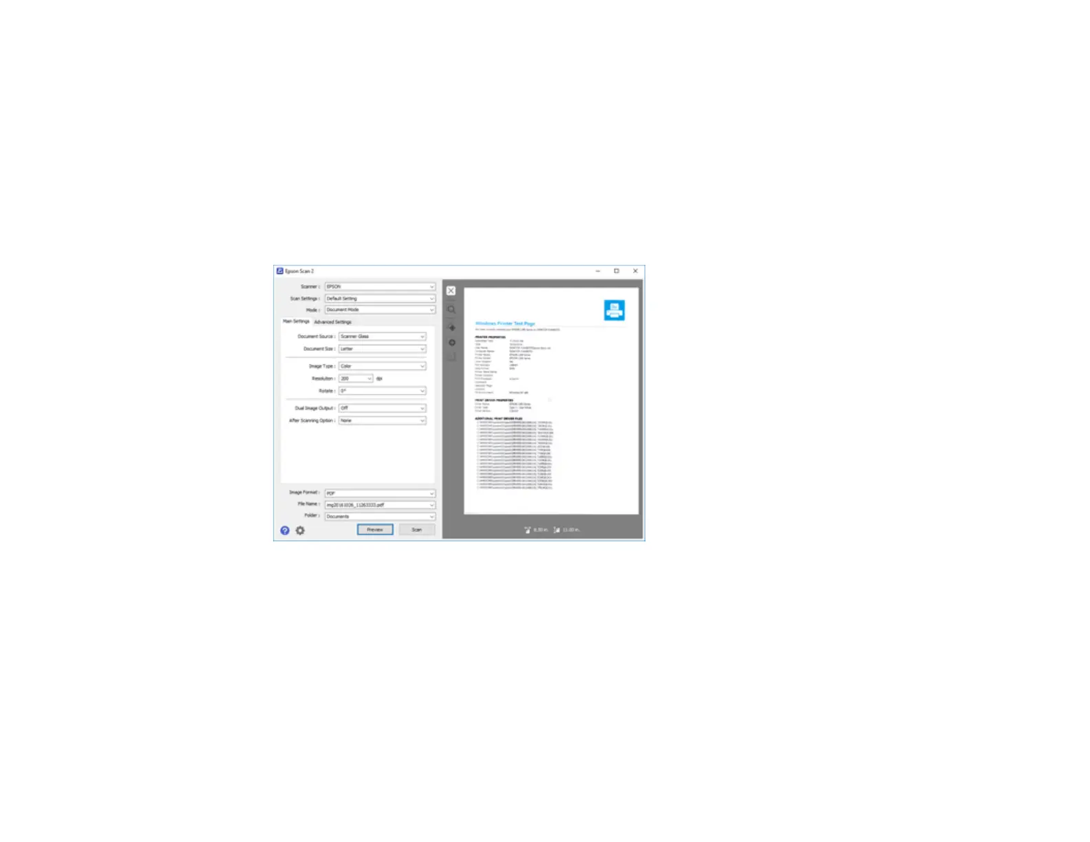 Epson Scan 2 previews your original and displays the results in the Epson Scan 2 window.