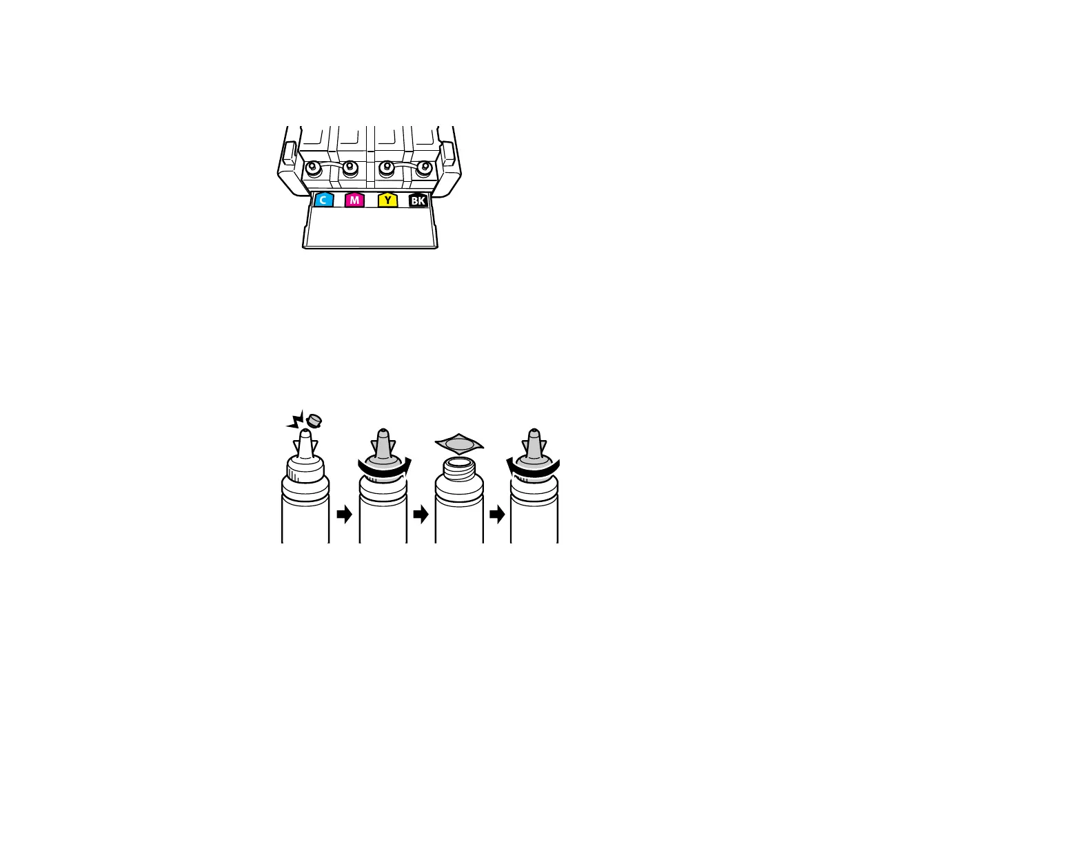Note: Make sure the color of the ink bottle matches the ink color you want to refill.