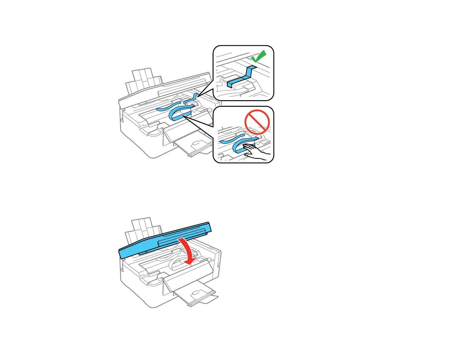 Caution: Do not place tape on the white flat cable inside the product; otherwise, you may damage