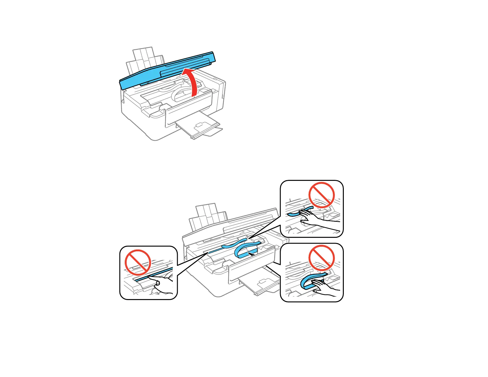 Caution: Do not touch the flat white cable inside the printer. Do not lift the scanner unit while the
