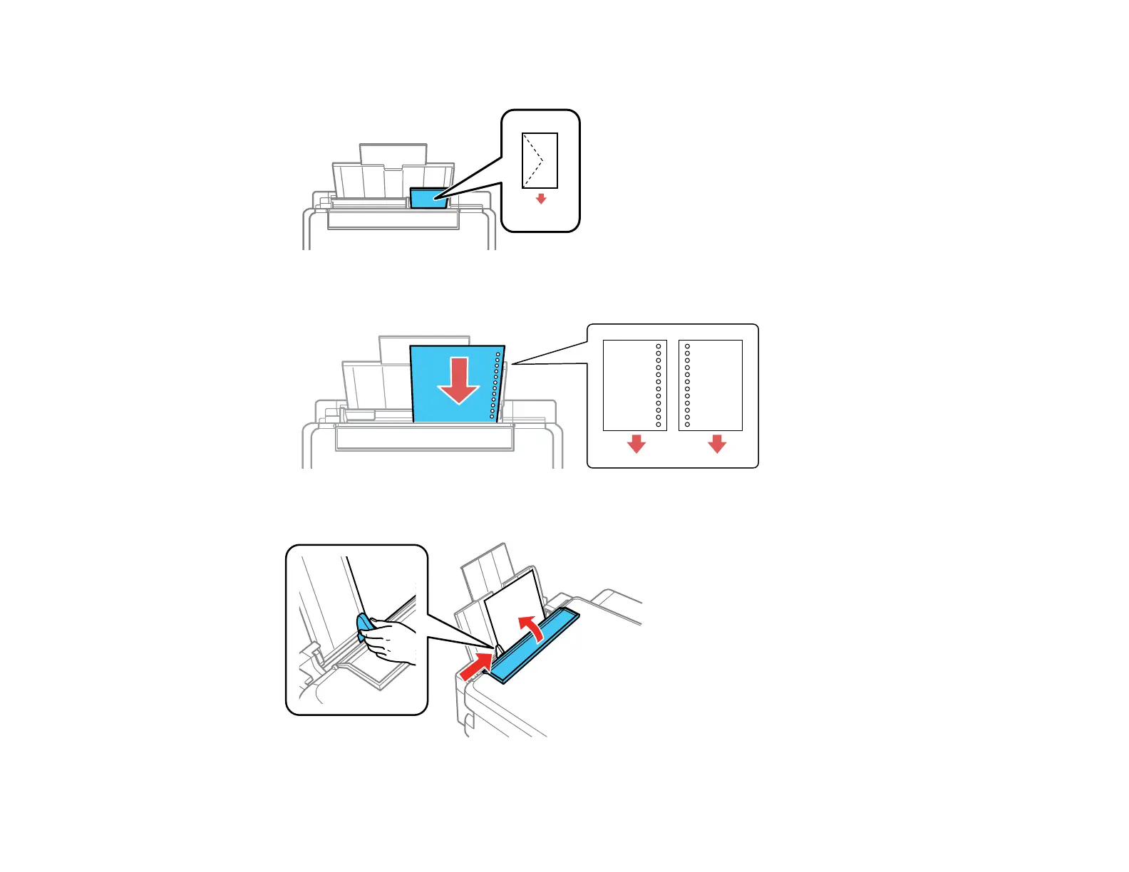 Load up to 10 envelopes against the right side. Load them printable side up and flap edge left.