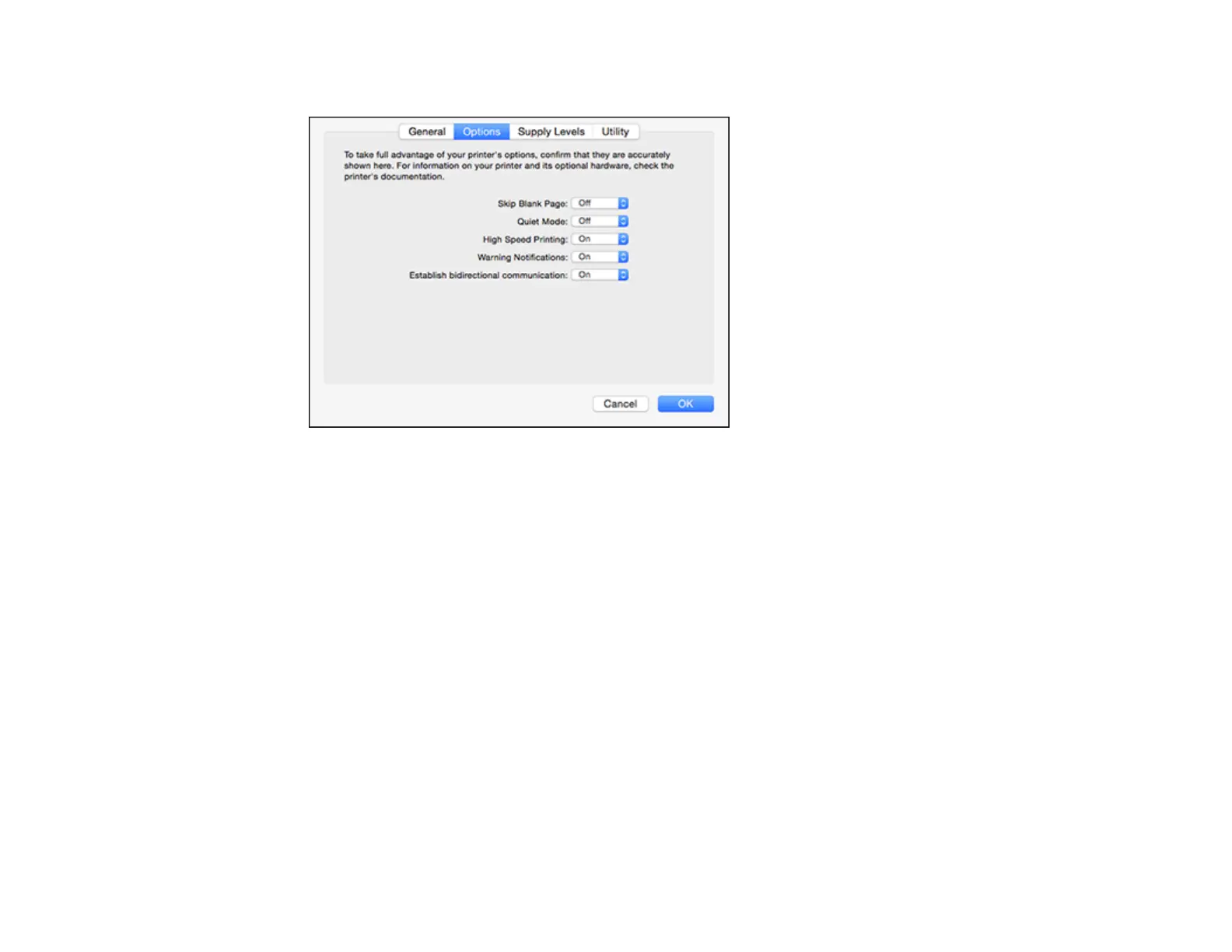 Lets you choose whether or not to receive warning notifications from the printer software for various