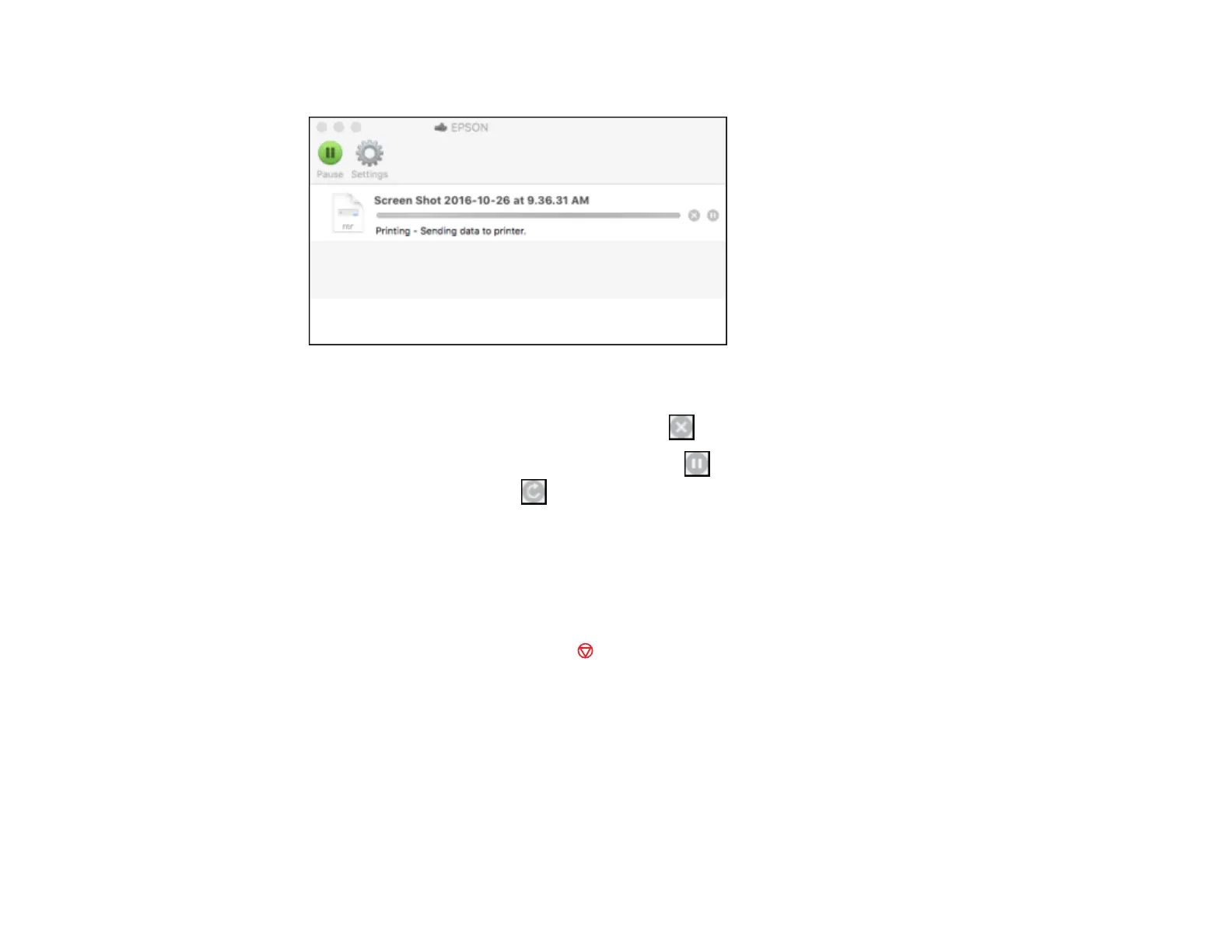 • To pause a print job, click the print job and click or Hold. To resume a print job, click the