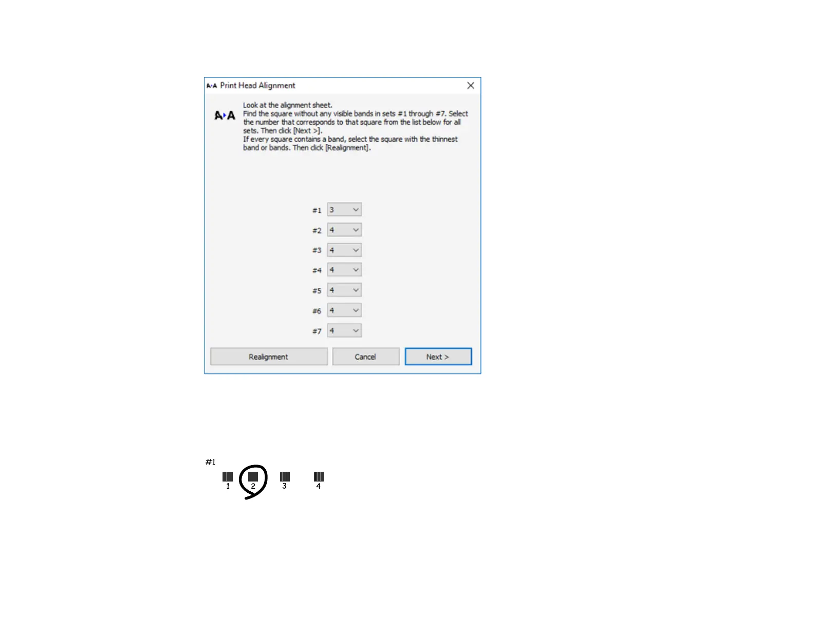 5. Check the printed pattern and follow the instructions on the screen to choose the number of the best