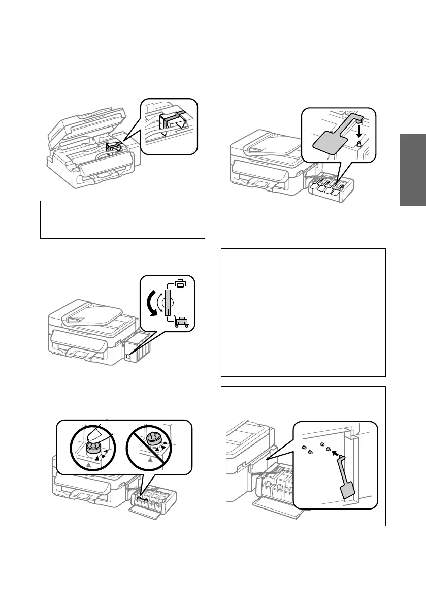 Riporre i coperchi dei serbatoi di inchiostro installati sul