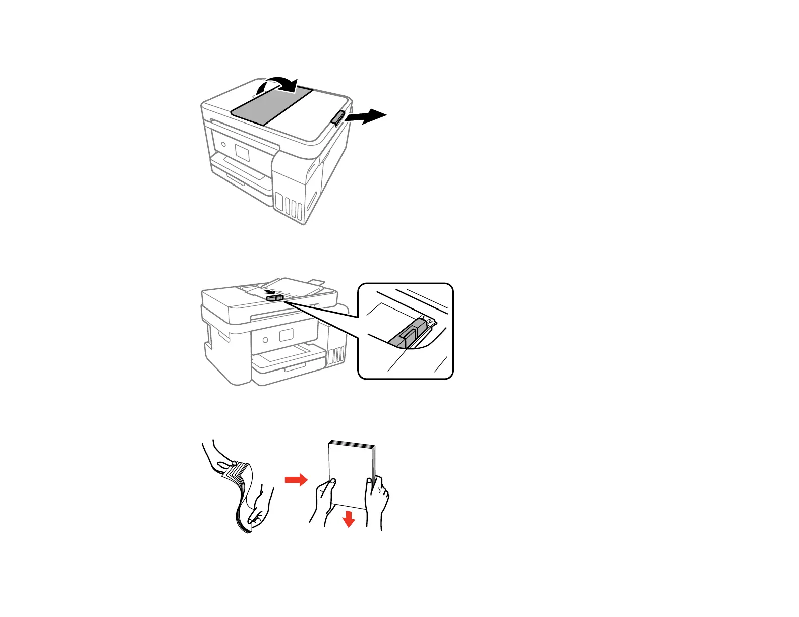 1. Open the ADF document support and slide out the ADF output tray extension.