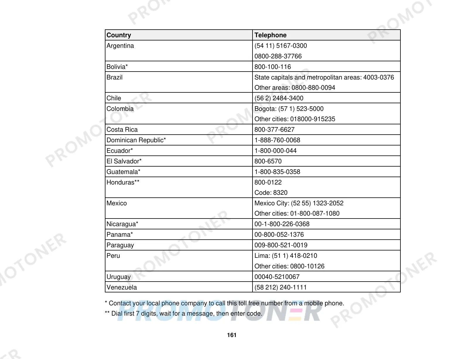 * Contact your local phone company to call this toll free number from a mobile phone.