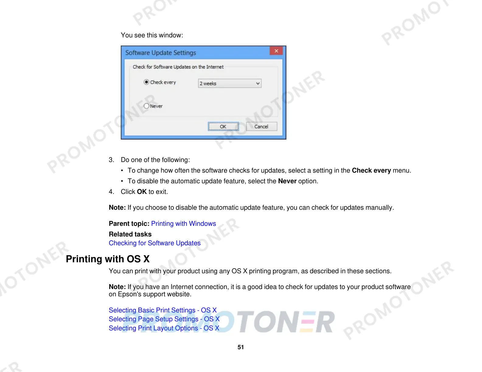 • To disable the automatic update feature, select the Never option.