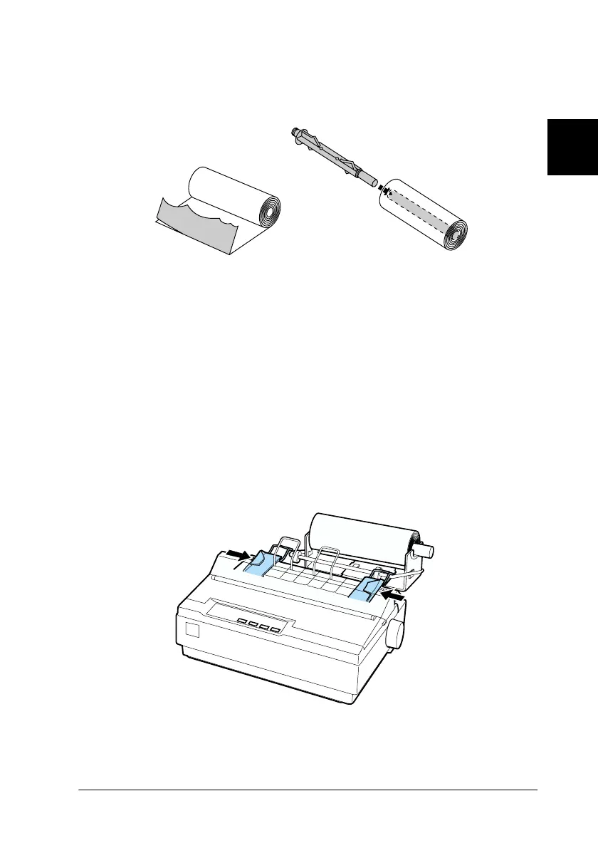 5. Set the shaft and paper roll onto the roll paper holder. Orient