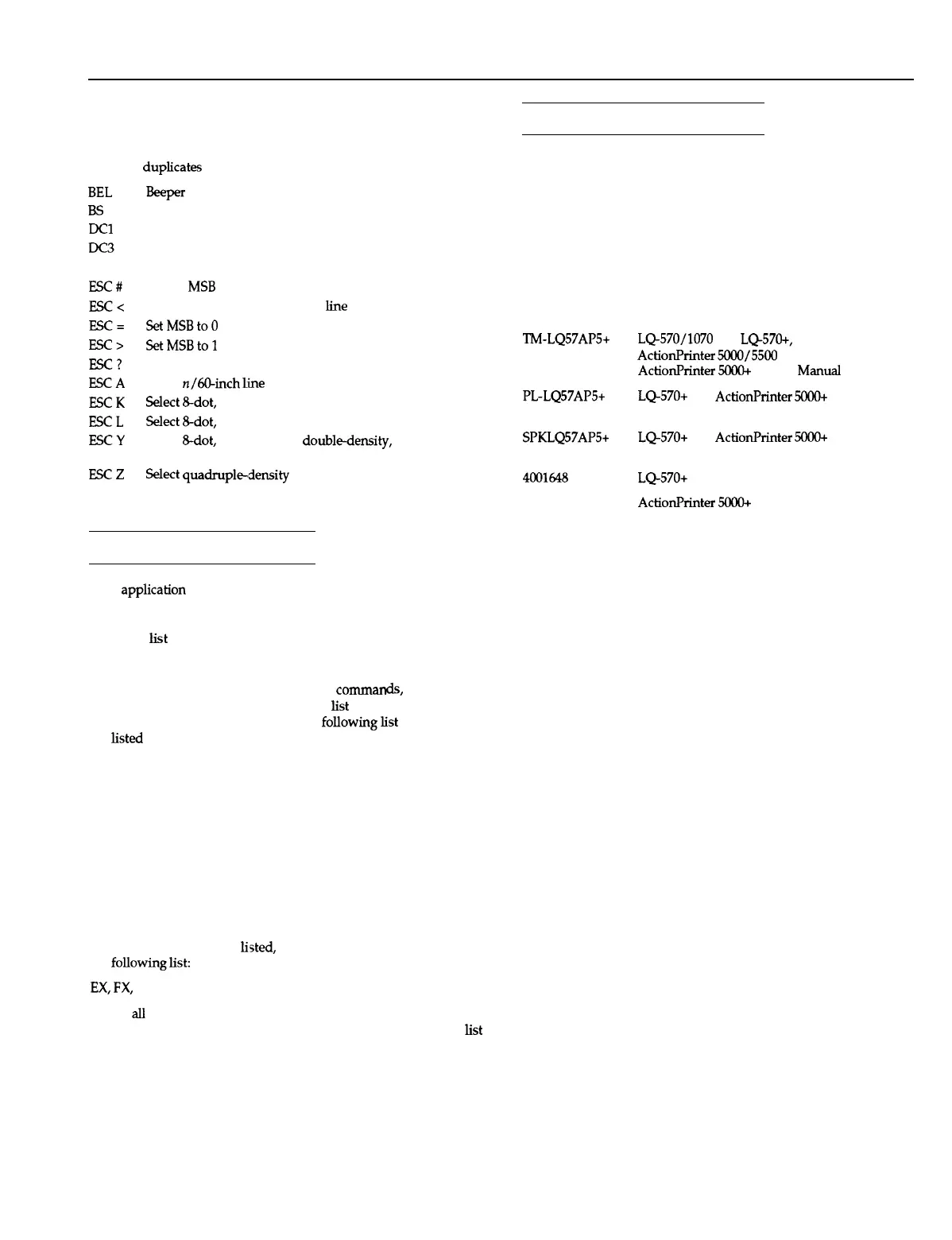 LX, RX, MS, Epson printer, Standard printer, Draft printer