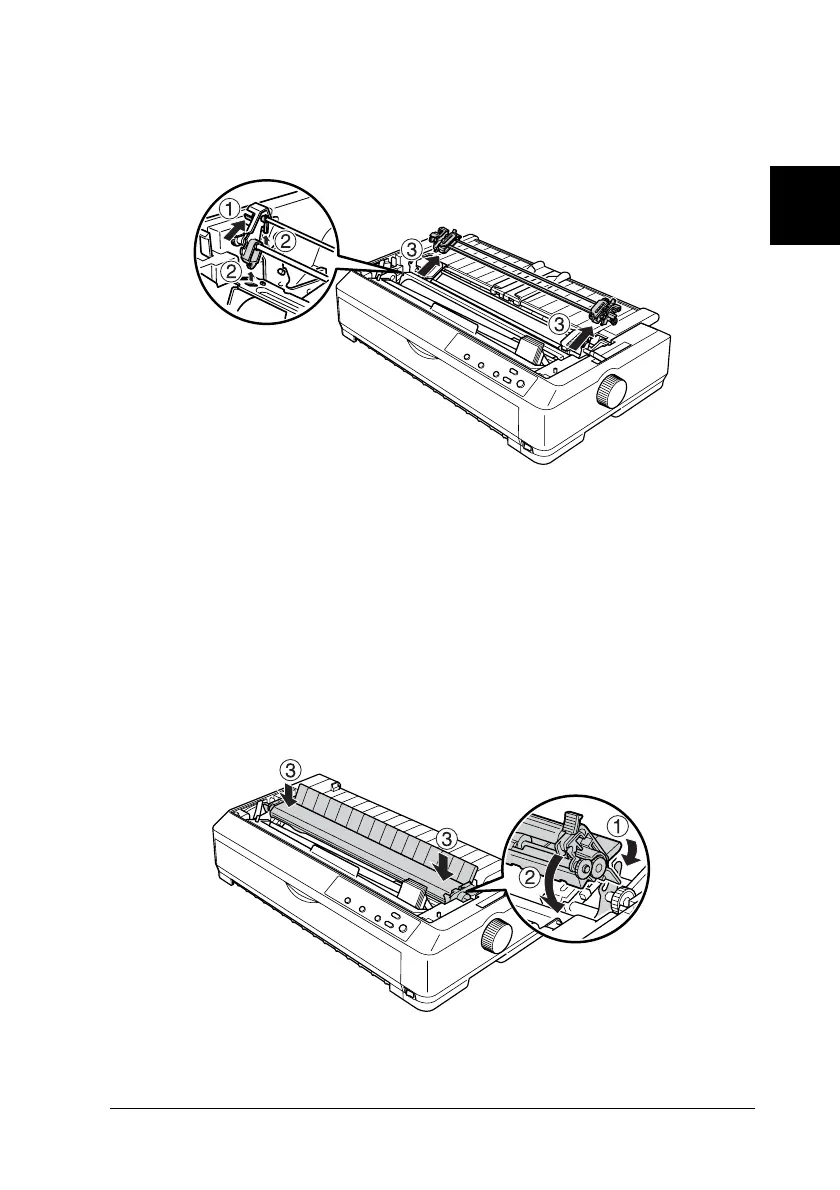 6. Reinstall the paper tension unit by lower it onto the printer’s