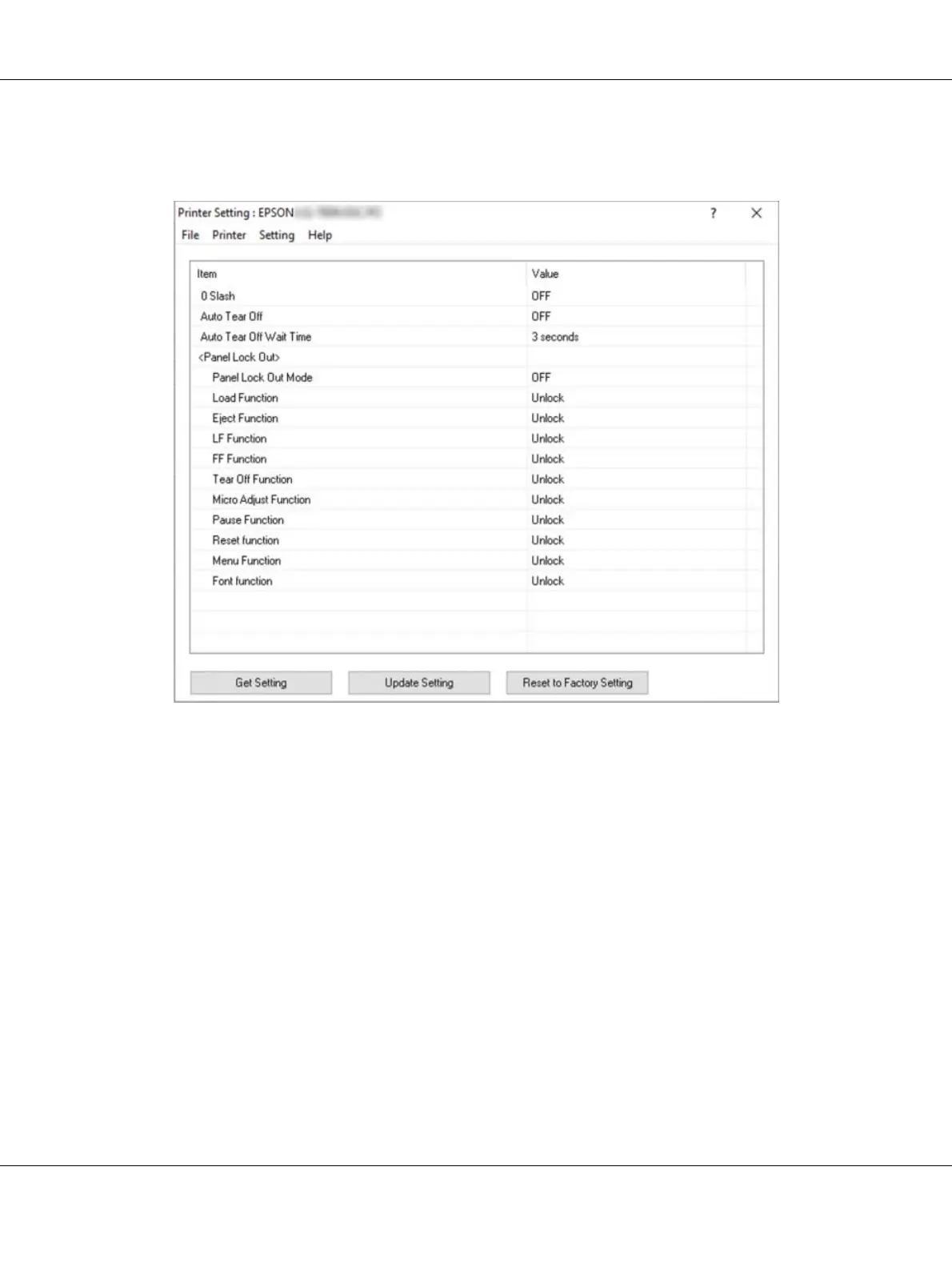 Utility menu, see “Using the Printer Driver” on page 47. The Printer Setting windows appears.