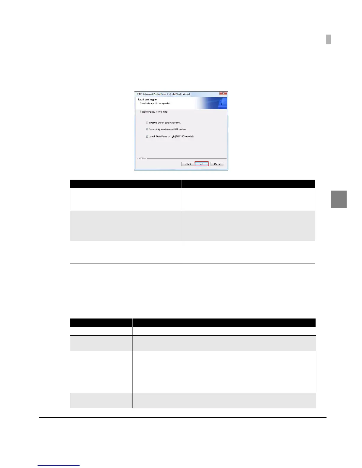 Install the EPSON parallel port driver. When this is checked, EPSON Parallel Port Driver for