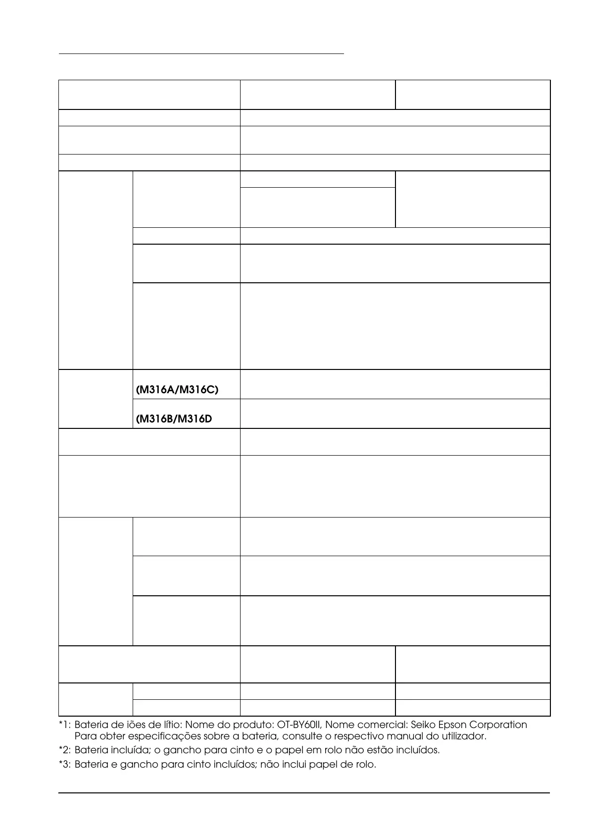 *1: Bateria de iões de lítio: Nome do produto: OT-BY60II, Nome comercial: Seiko Epson Corporation