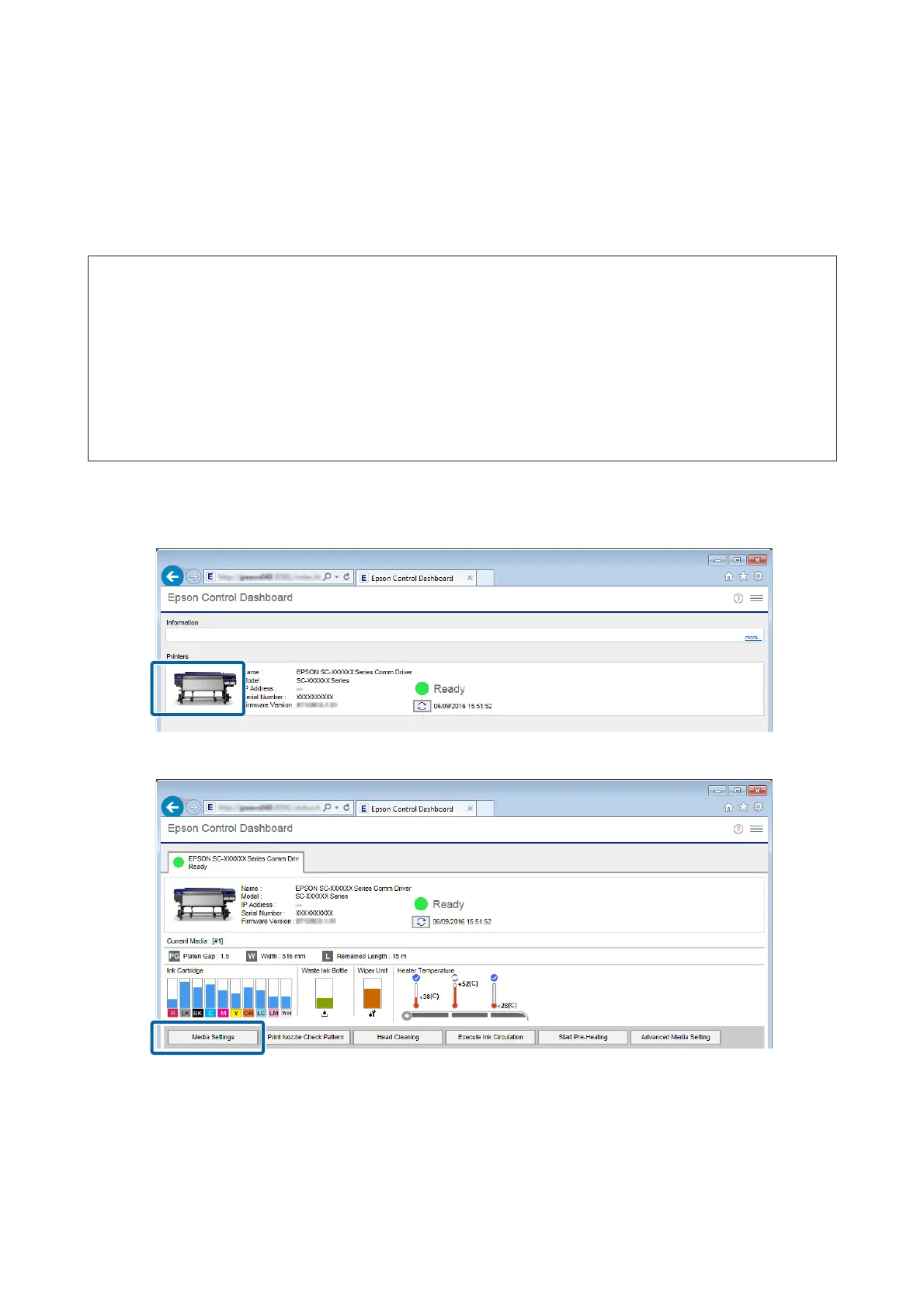 ❏ Do not do other operations on the printer while registering the media setting values.