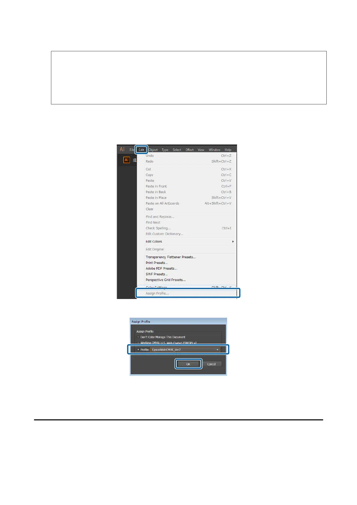Select EpsonWideCMYK_Ver2.icc in Profile, and then click OK.