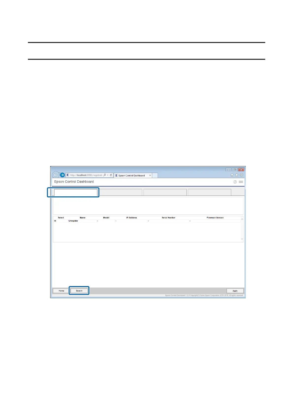 Start the Dashboard. Select the tab for registering printers, and then click Search.