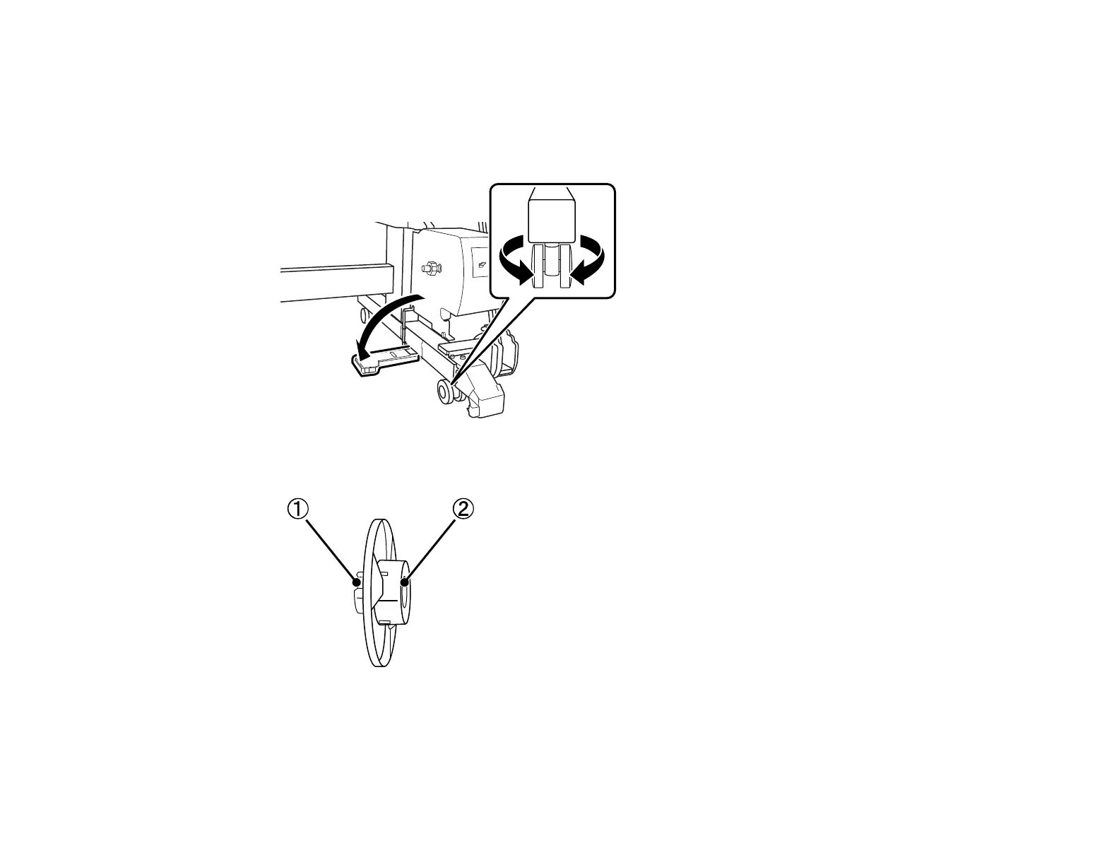 Note: If the caster is not positioned parallel to the printer stand, it may interfere with the take-up reel