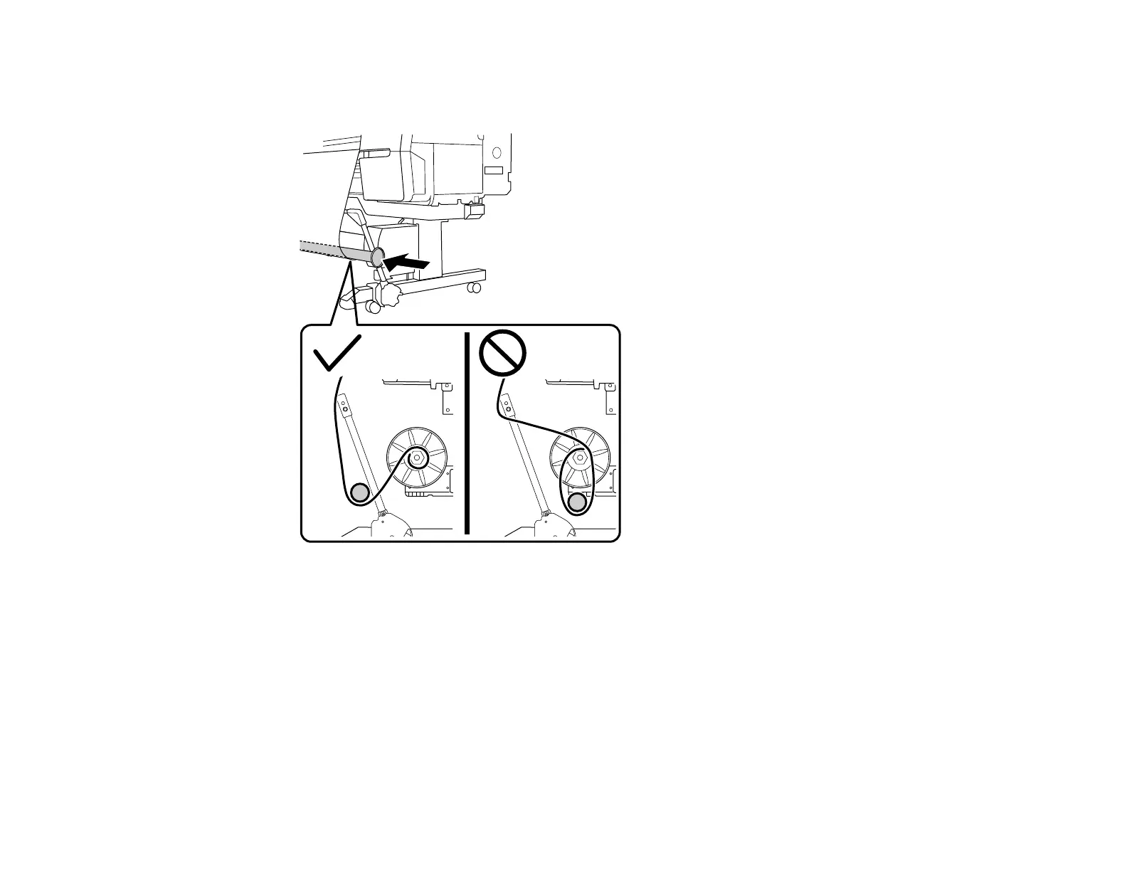 If you attached media to the roll core with the printable side in, insert the tensioner as shown here.