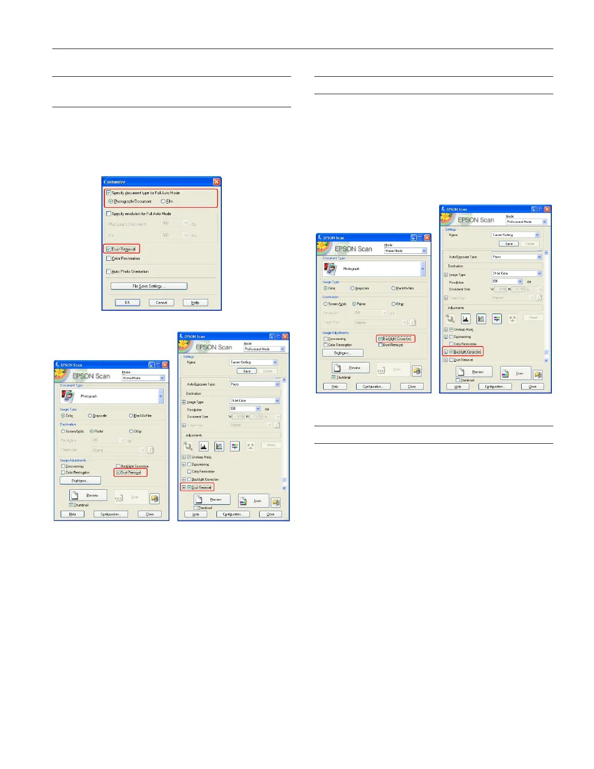 Using the Backlight Correction feature in Epson Scan’s Home
