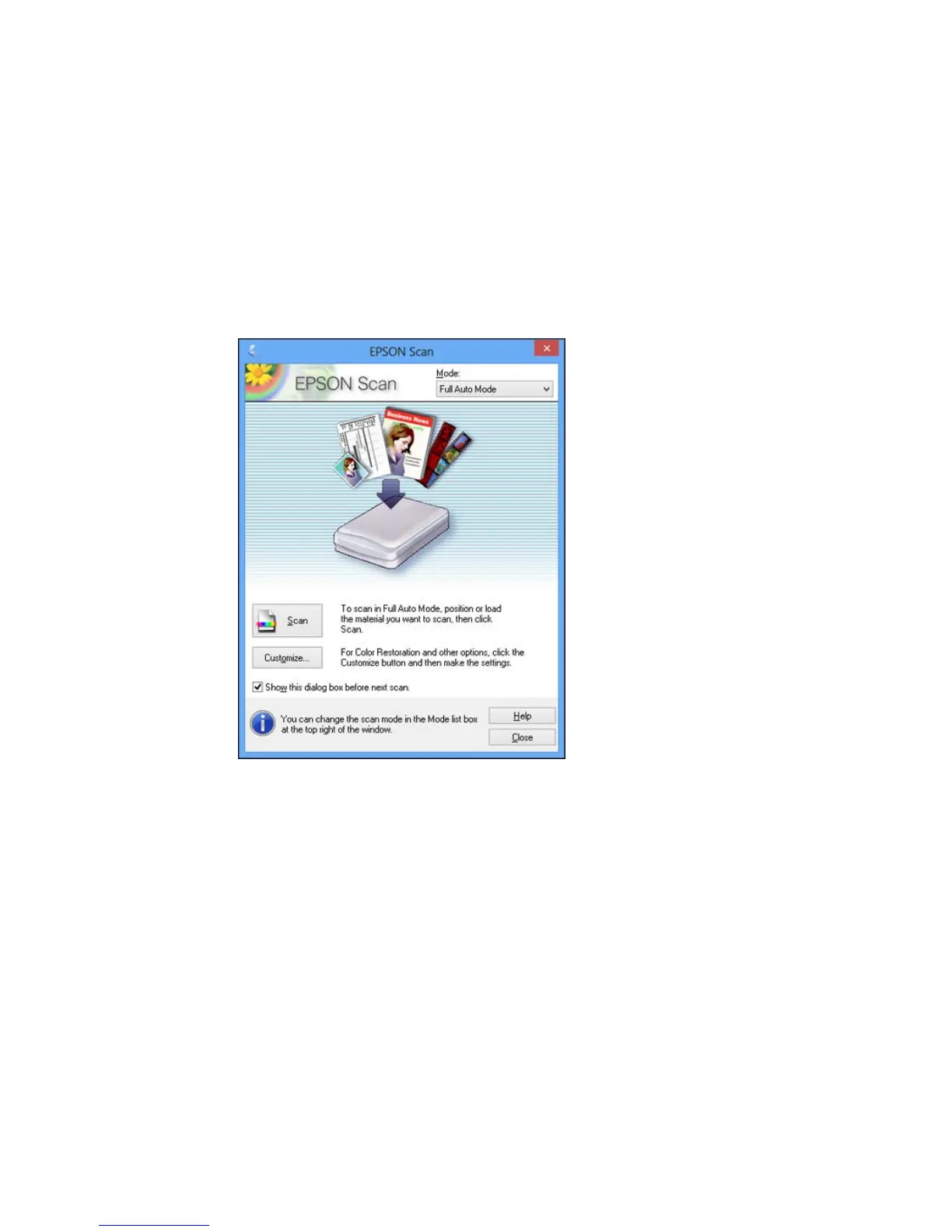 you have previously used Epson Scan, it may start in a different mode.