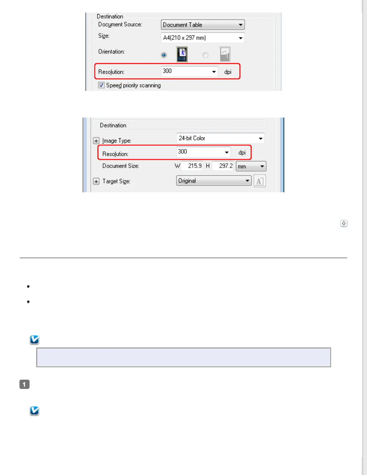Click the arrow next to the Resolution list and select the number of dpi (dots per inch) at which you want to scan.