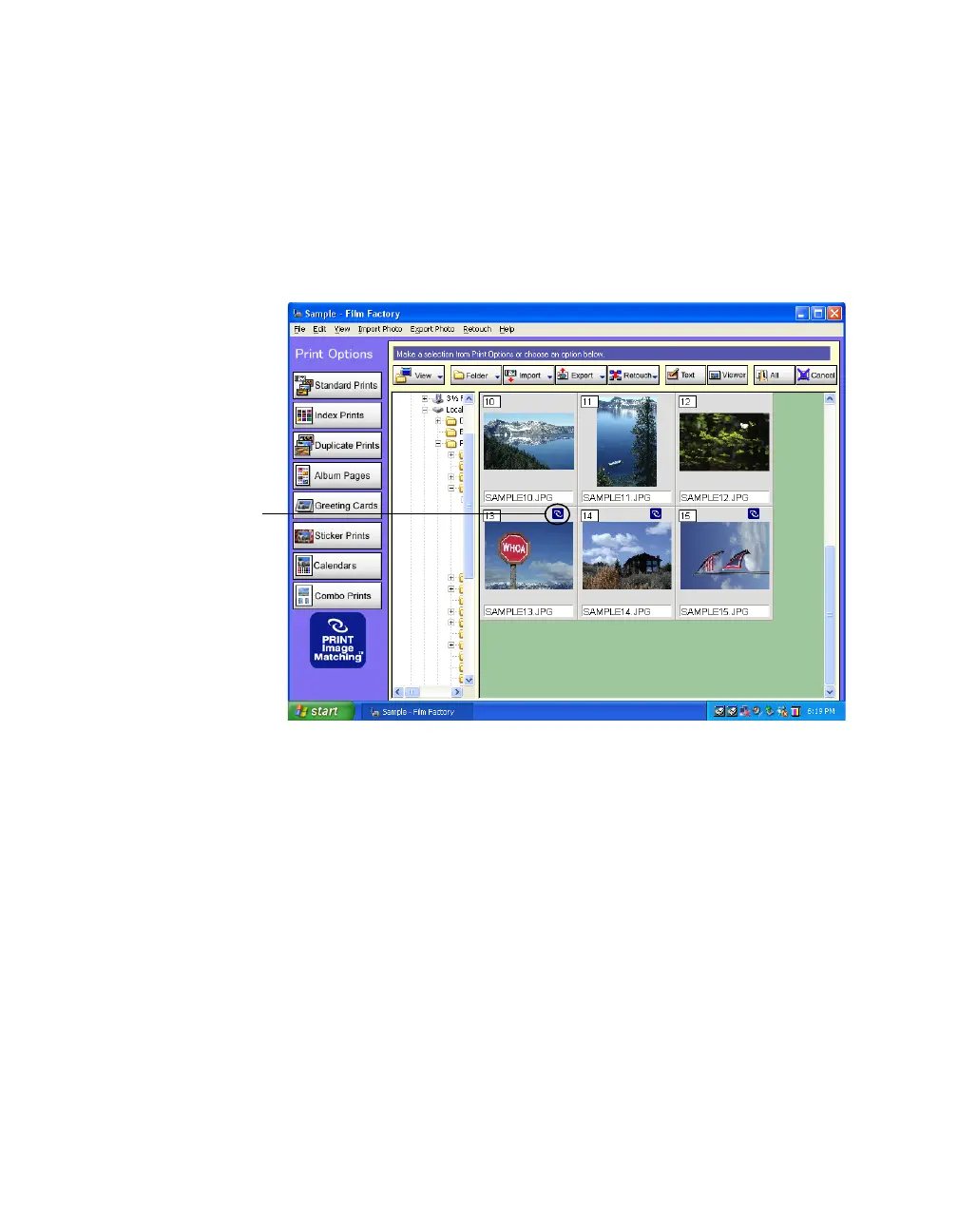 3. To select a photo for printing, click its thumbnail on the screen. The thumbnail is