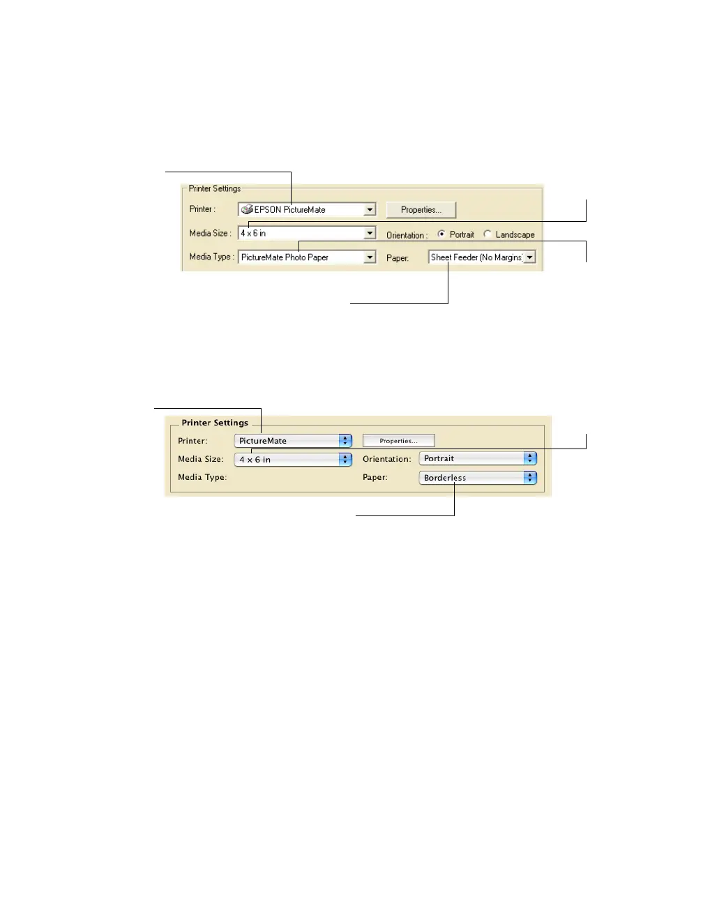 3. Windows and Macintosh 9.x: Select these options in the Printer Settings box at