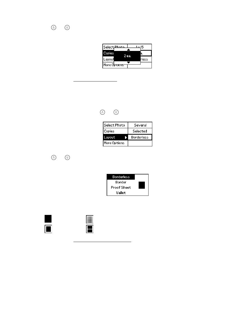 2. Press or to highlight the layout setting you want for your photo(s), then