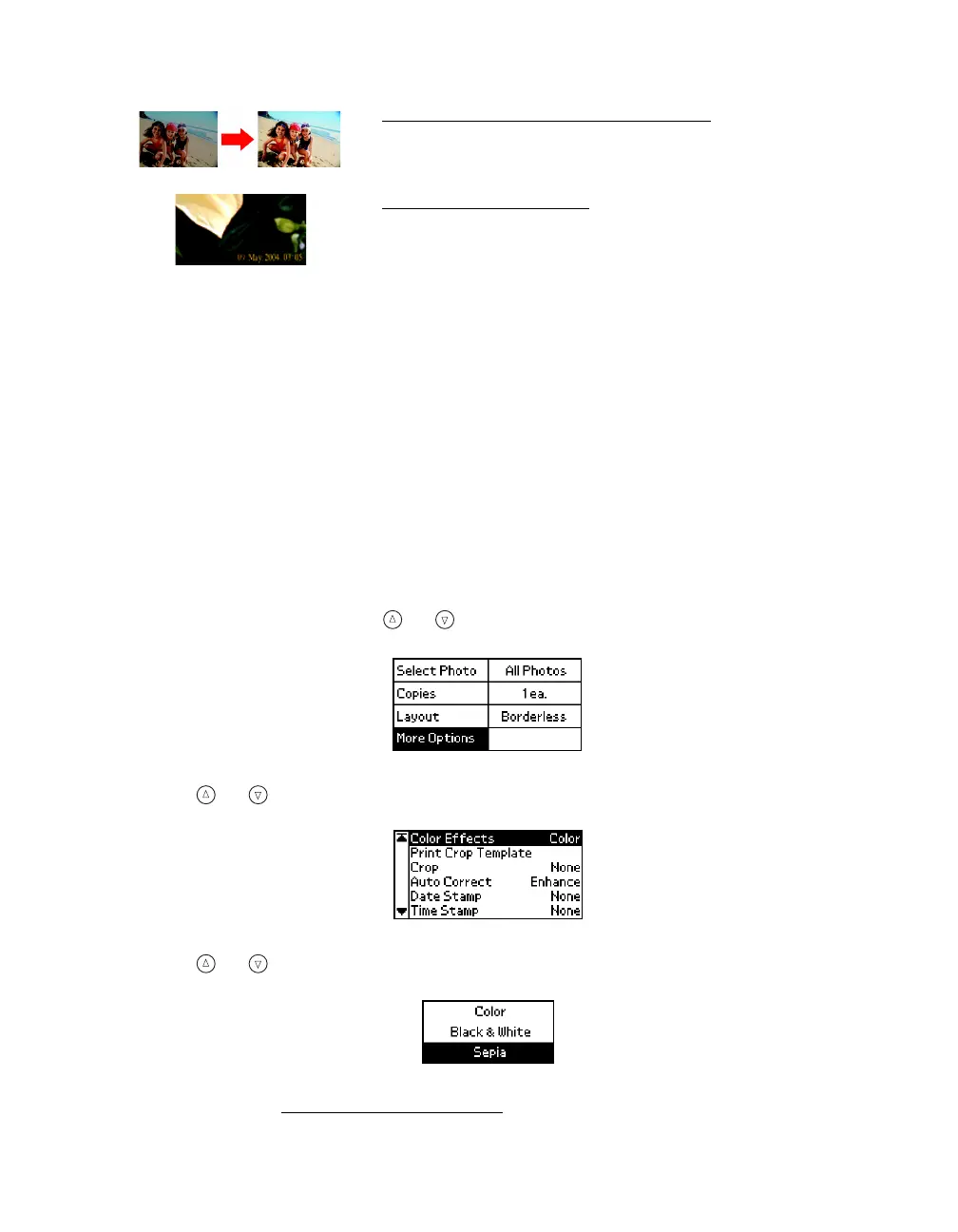 All of these features are available under More Options on PictureMate’s Main Menu.