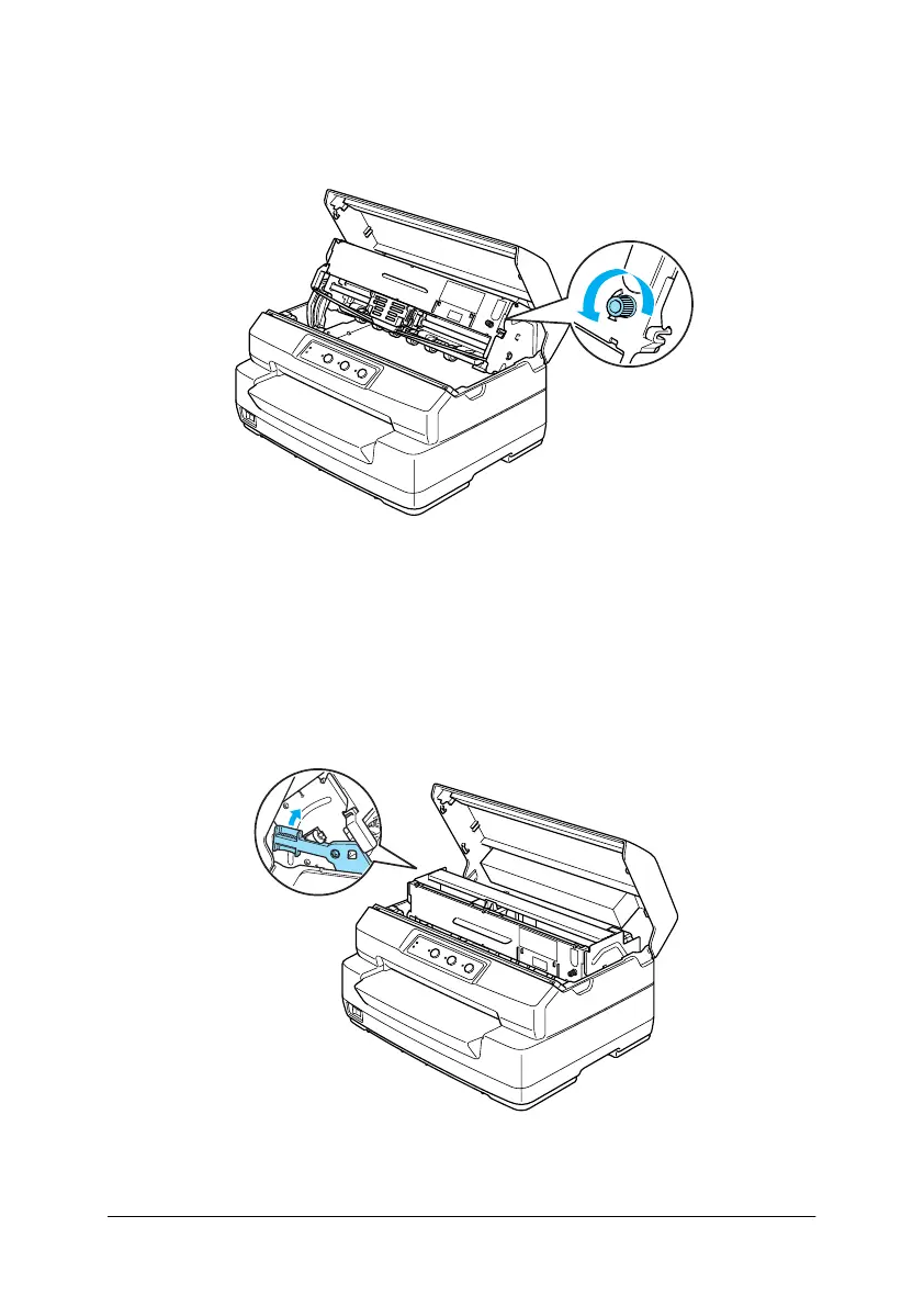 12. Turn the ribbon-tightening knob to help feed the ribbon into
