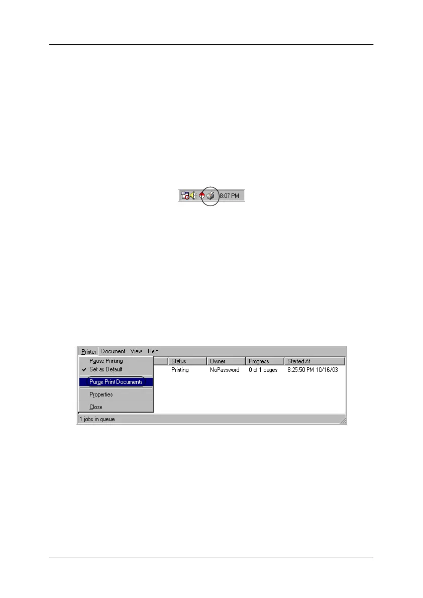 1. Double-click the printer icon on the task bar, then click Purge