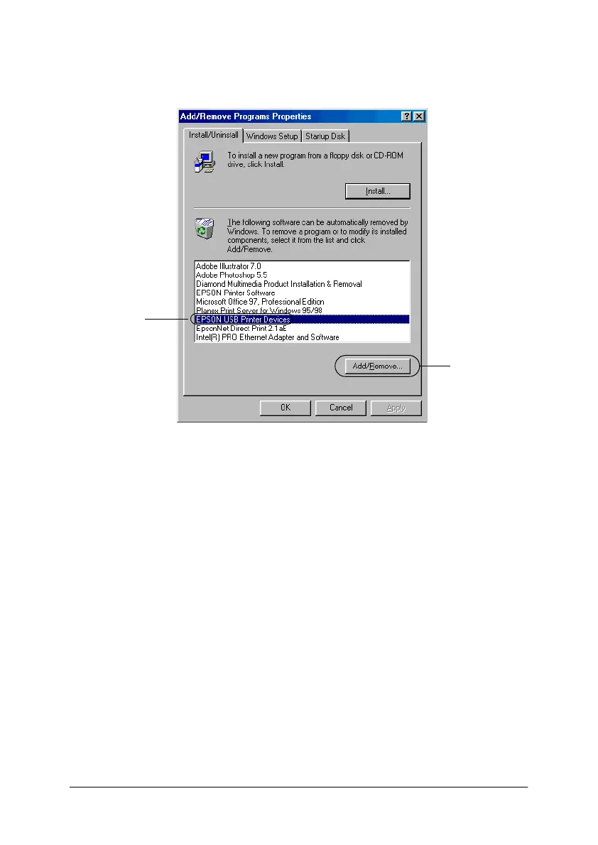 2. Select EPSON USB Printer Devices,andclickAdd/Remove.