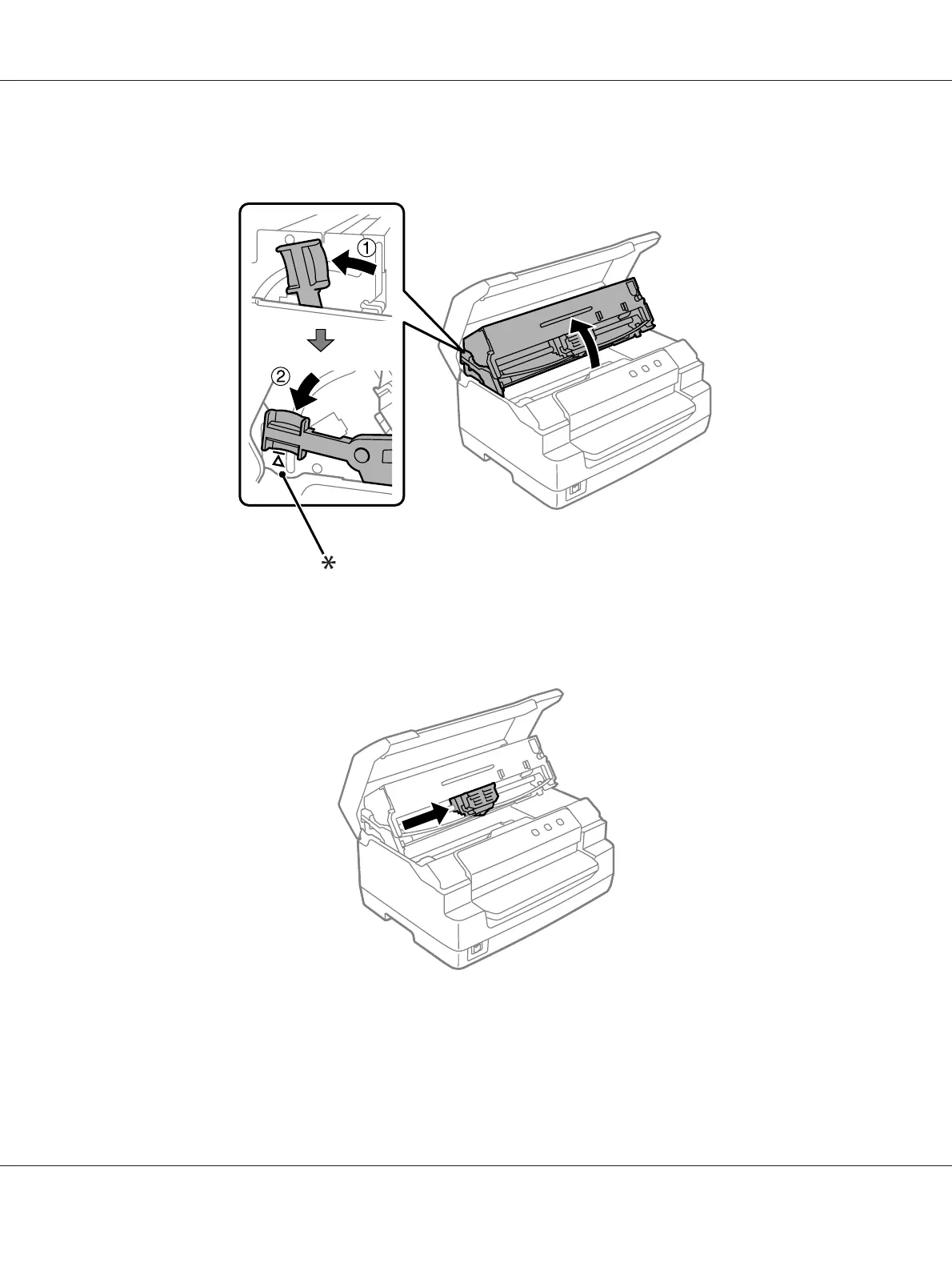 If the upper mechanism is not locked, it may drop down while you are replacing the ribbon.