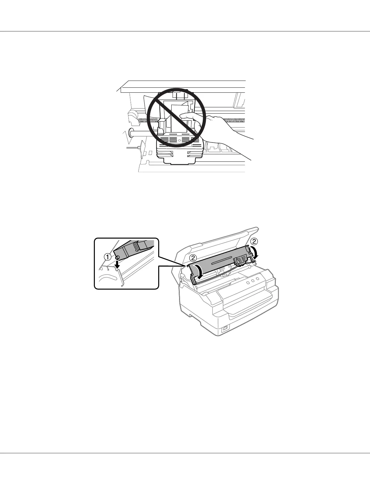 Do not touch the white cable inside the printer.