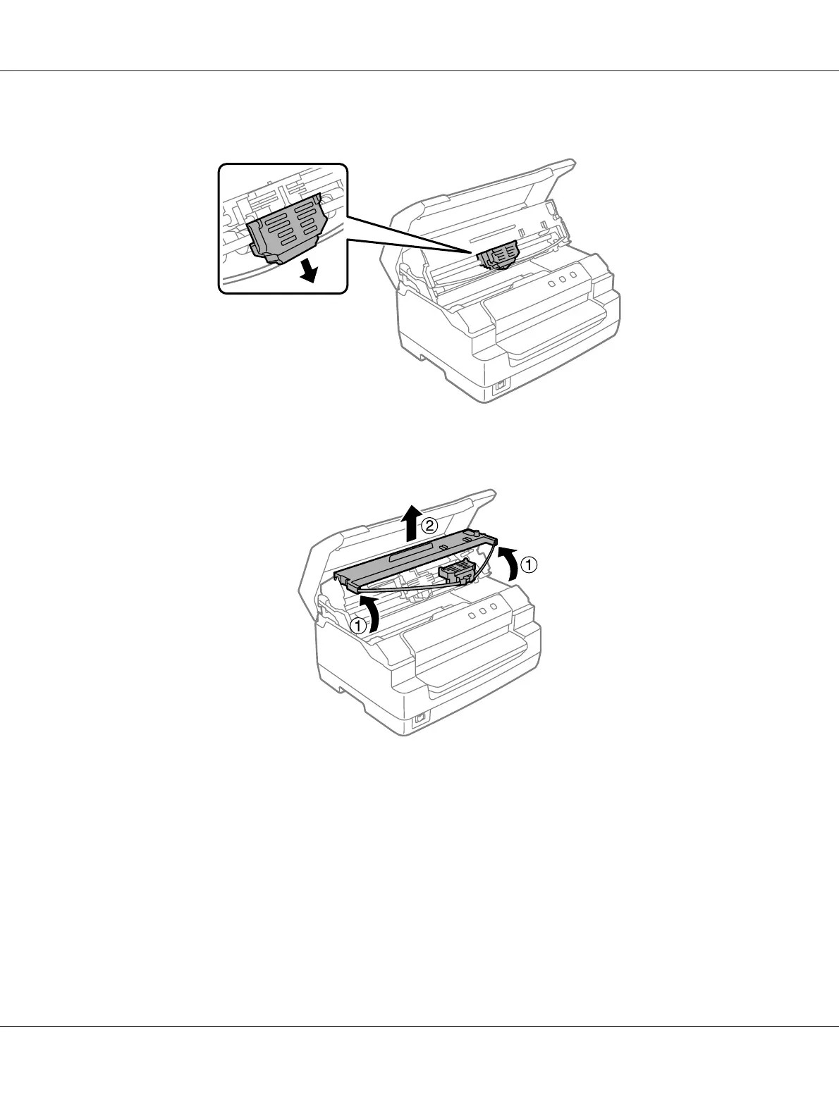 6. Hold both sides of the ribbon guide and pull it down until it is out of the print head.
