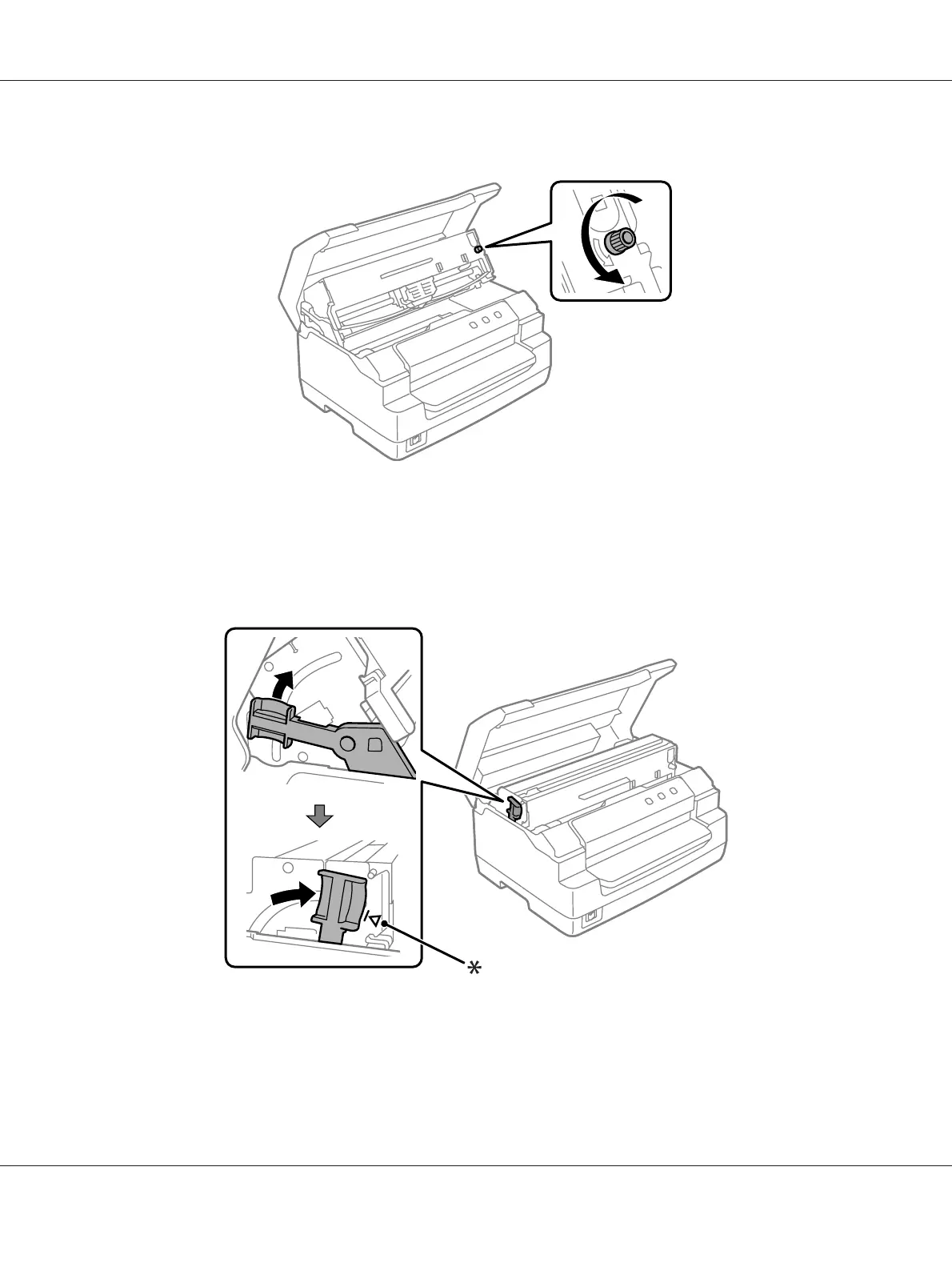 12. Turn the ribbon-tightening knob to help feed the ribbon into place.