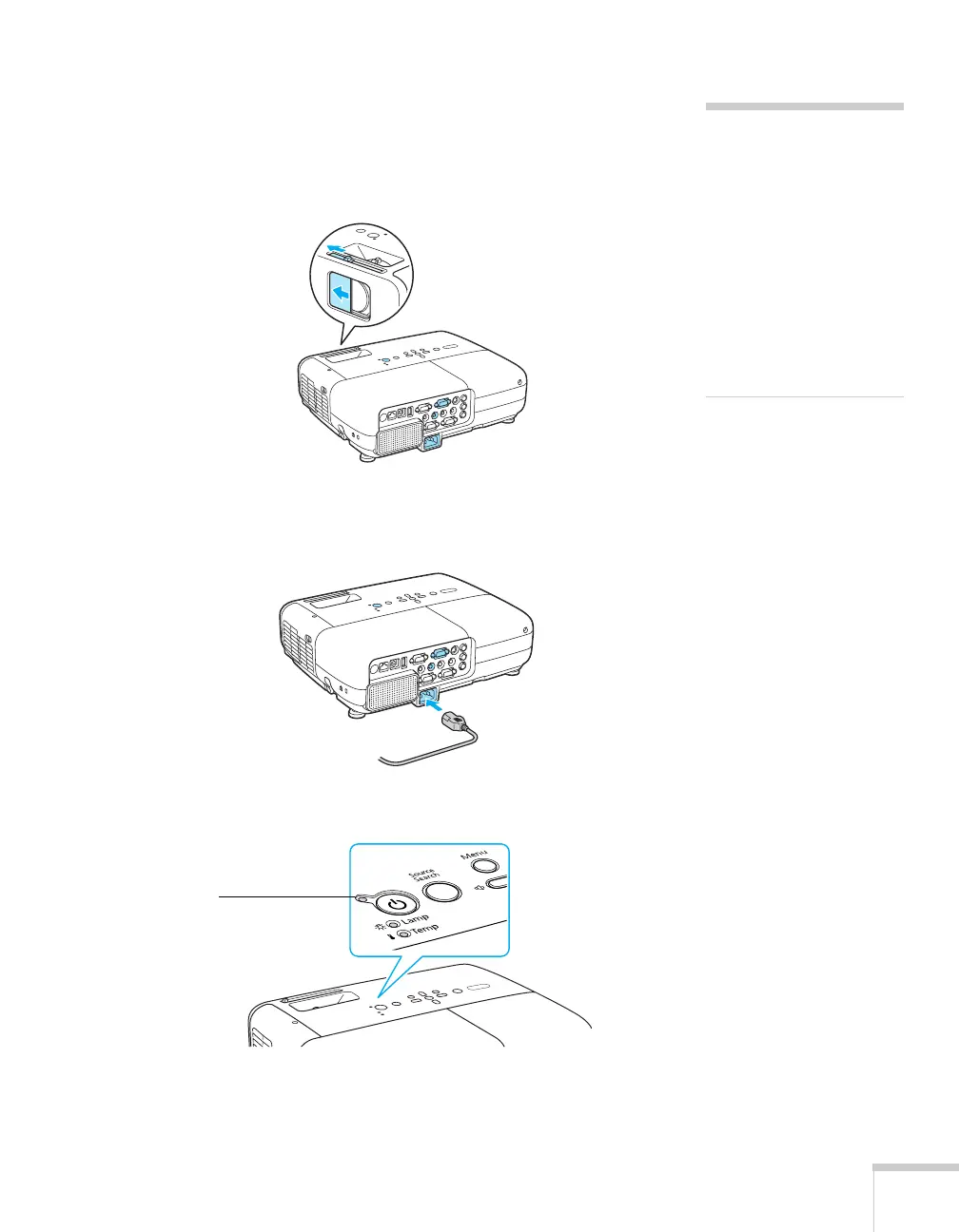 Follow these steps to turn on the projector: