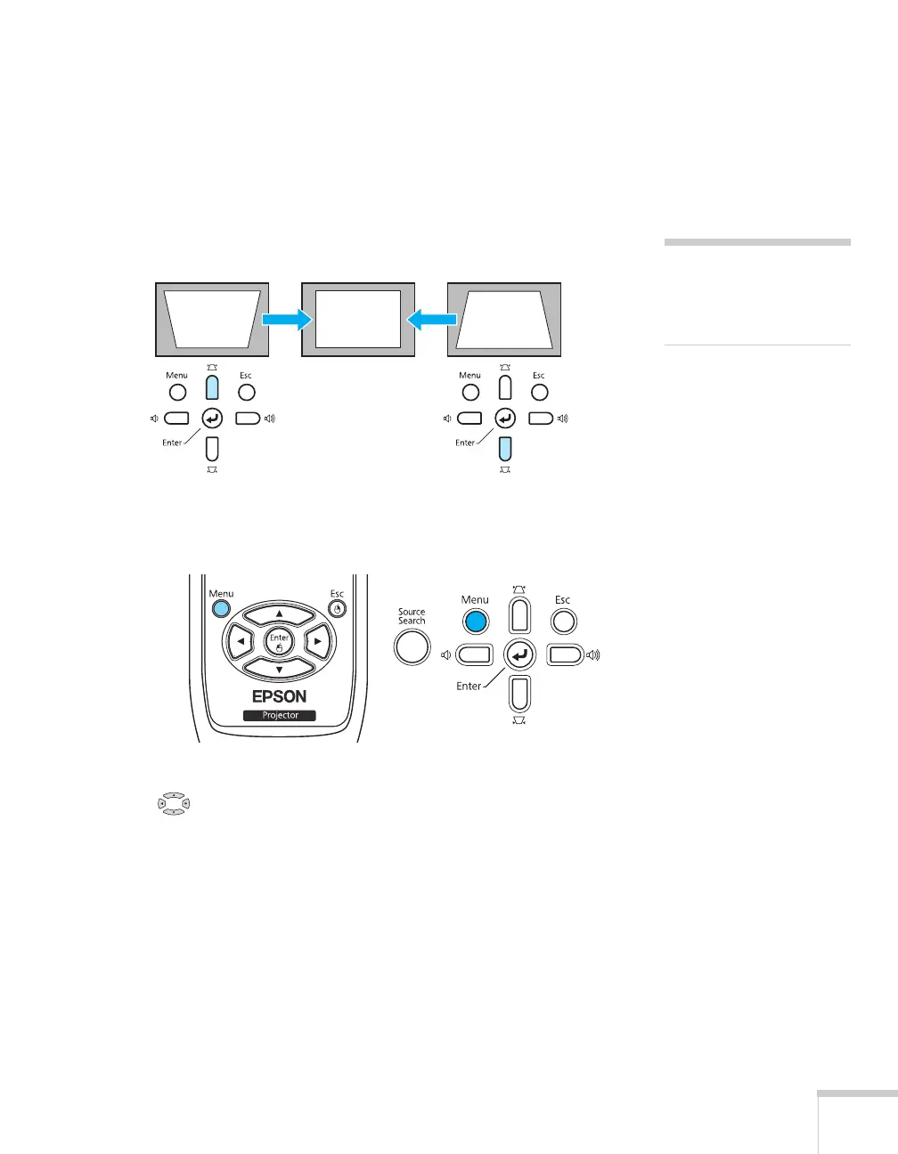 ■ Press one of the two keystone correction buttons on the