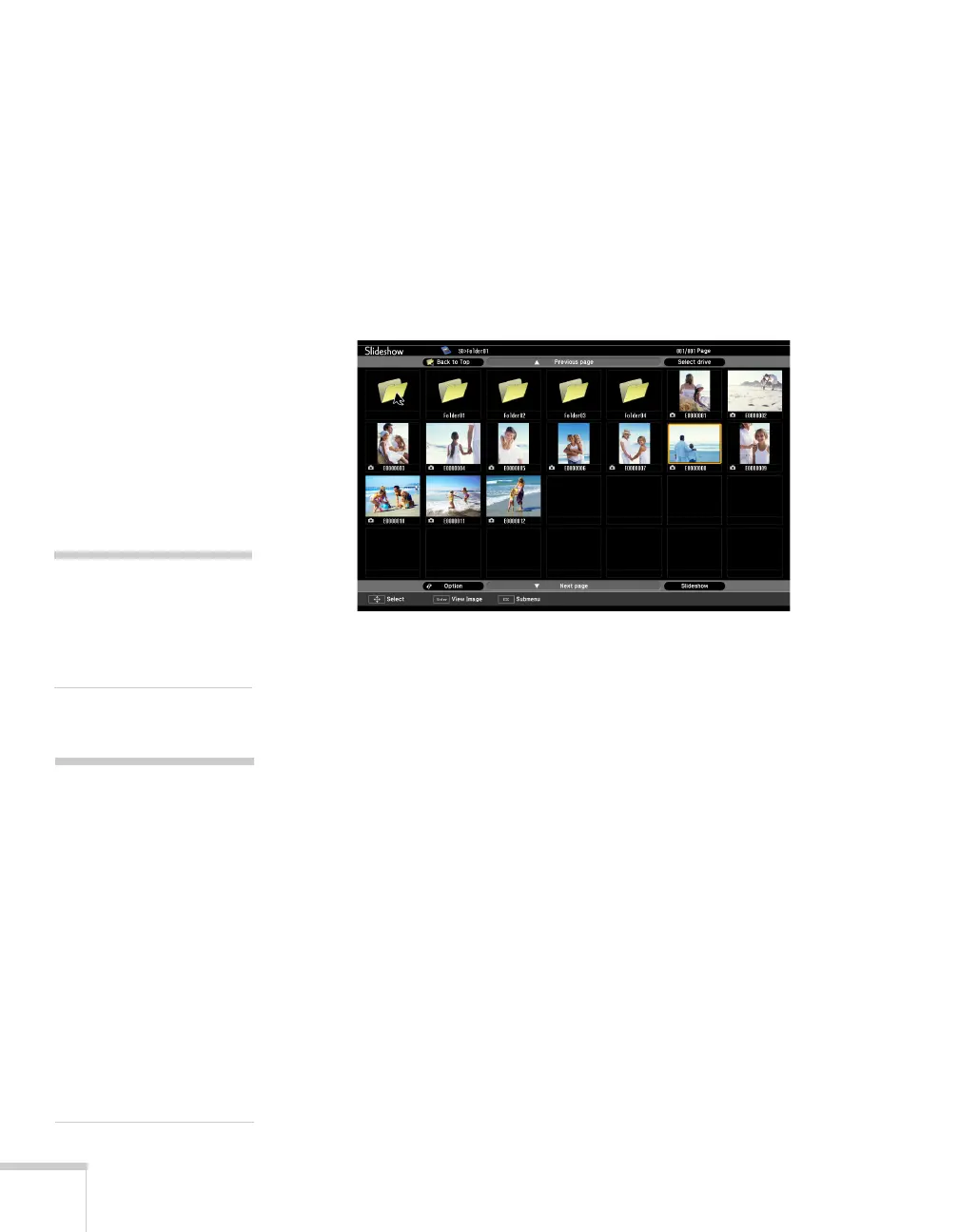 5. To display a slideshow of all the images in the current folder, use